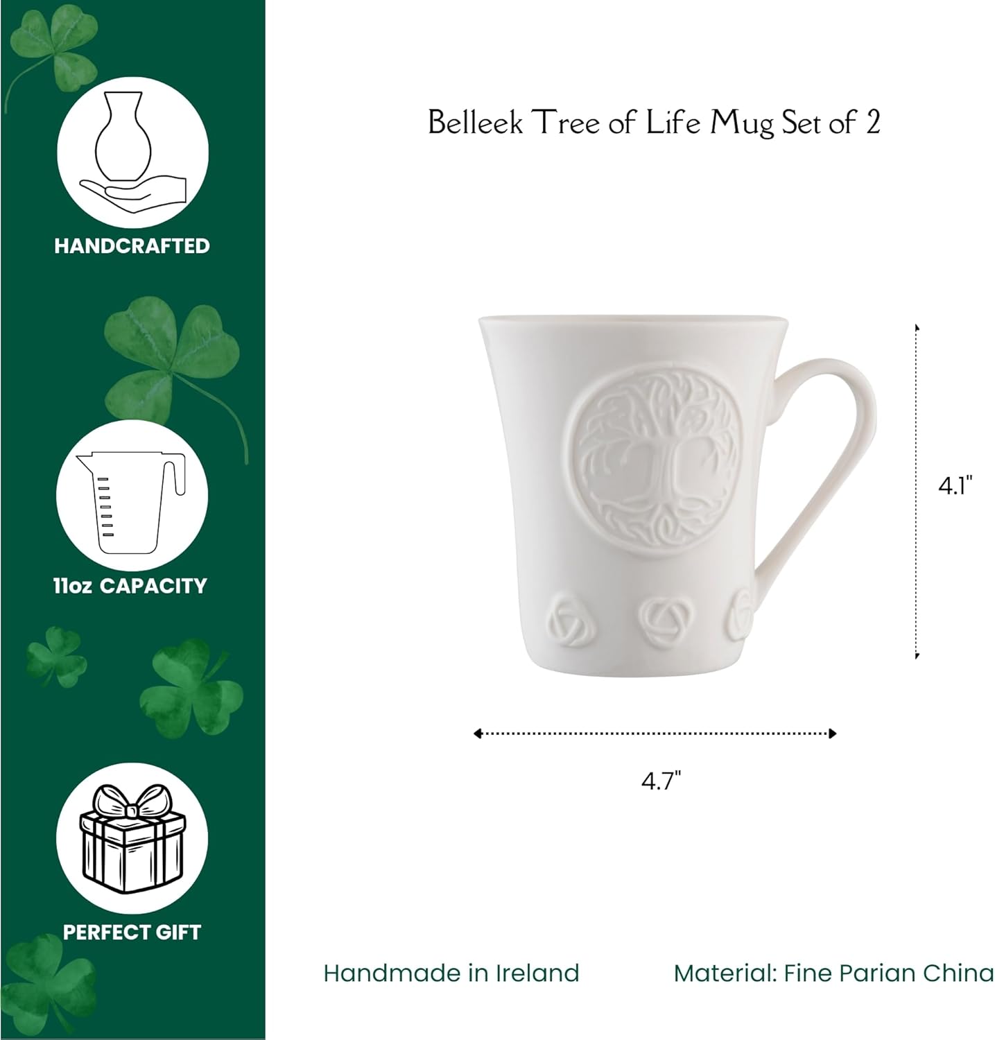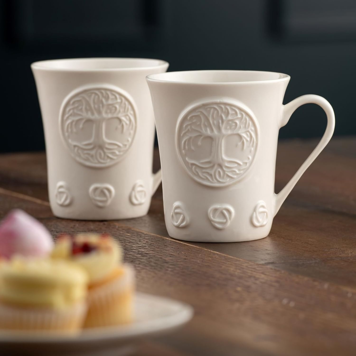 The Belleek Tree of Life Ceramic Coffee Mug Set embodies timeless sophistication, exceptional craftsmanship, and versatile design. Adorned with a creamy white finish and an intricately embossed Tree of Life motif, these white coffee cups bring elegance to any home decor. Expertly crafted from premium porcelain, this ceramic coffee mug set offers superior durability and a smooth, luxurious texture, making it ideal for everyday use or as refined cocoa mugs. Perfect for both formal and casual settings, these Irish mugs seamlessly complement festive gatherings, restaurant presentations, or as decorative centerpieces. An exceptional gift for weddings, anniversaries, housewarmings, or special celebrations, this coffee mug gift set honors Belleek’s enduring heritage of Irish artistry, blending tradition with modern sophistication for a truly memorable addition to any collection.