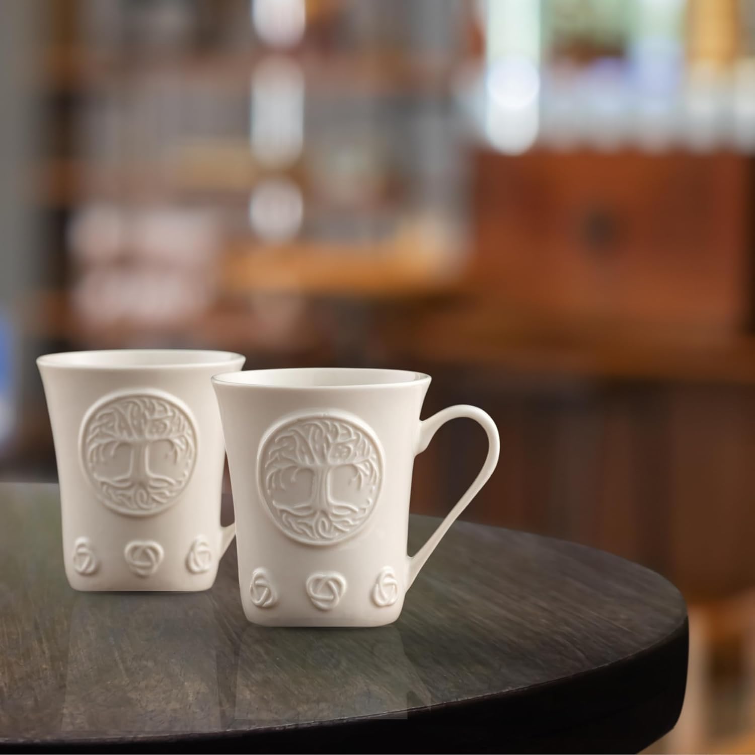 ELEGANT DESIGN WITH A CREAMY WHITE FINISH: These ceramic coffee mugs feature a creamy white hue and an embossed Tree of Life design, adding sophistication to any home decor. These white coffee cups blend classic charm with contemporary appeal.