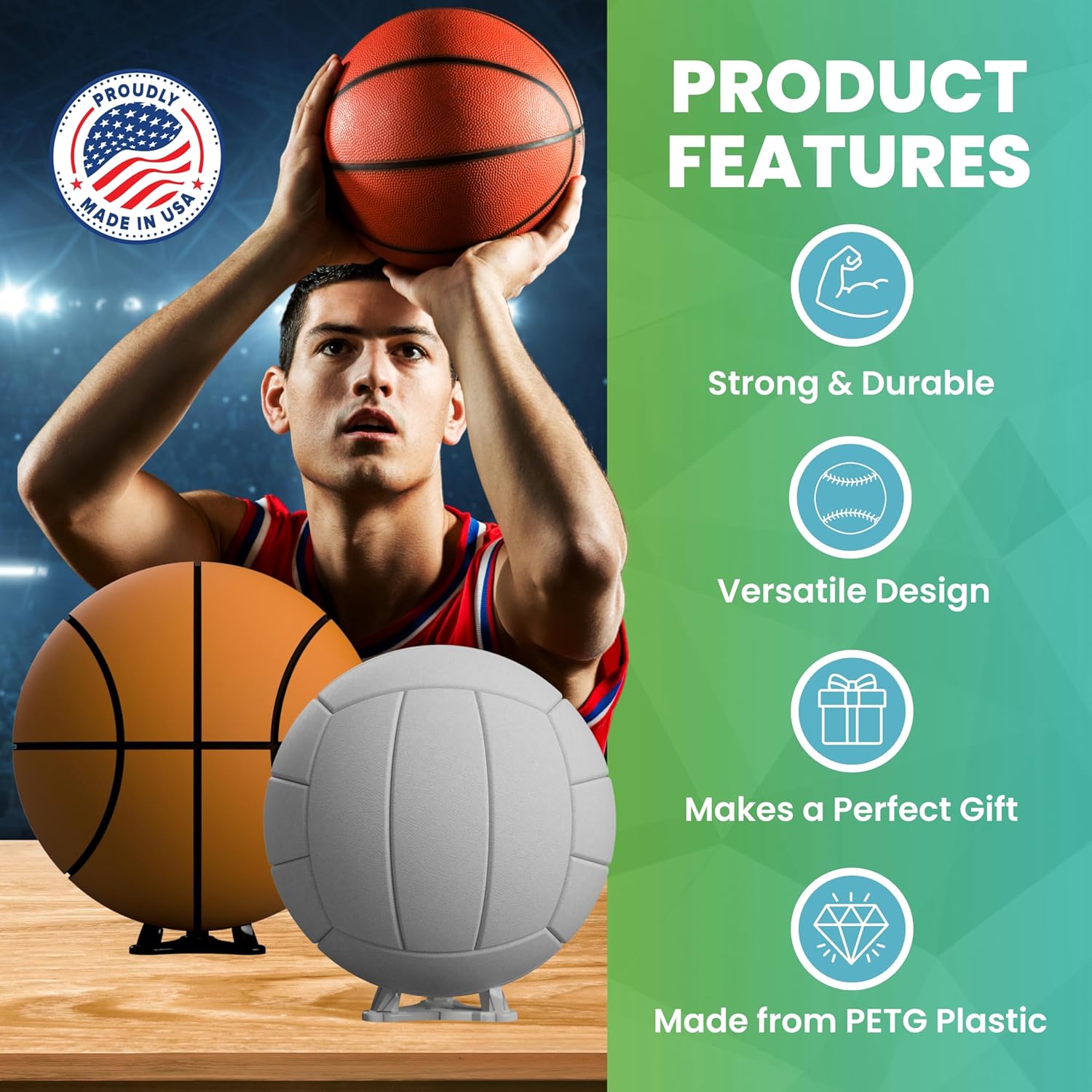 Made in USA – Built to Last – Precision 3D-printed PETG for exceptional durability and sleek finish, perfect for a basketball case display or soccer ball display case arrangement.