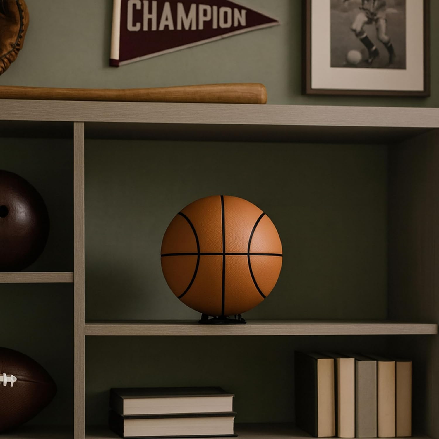 Made in USA – Built to Last – Precision 3D-printed PETG for exceptional durability and sleek finish, perfect for a basketball case display or soccer ball display case arrangement.