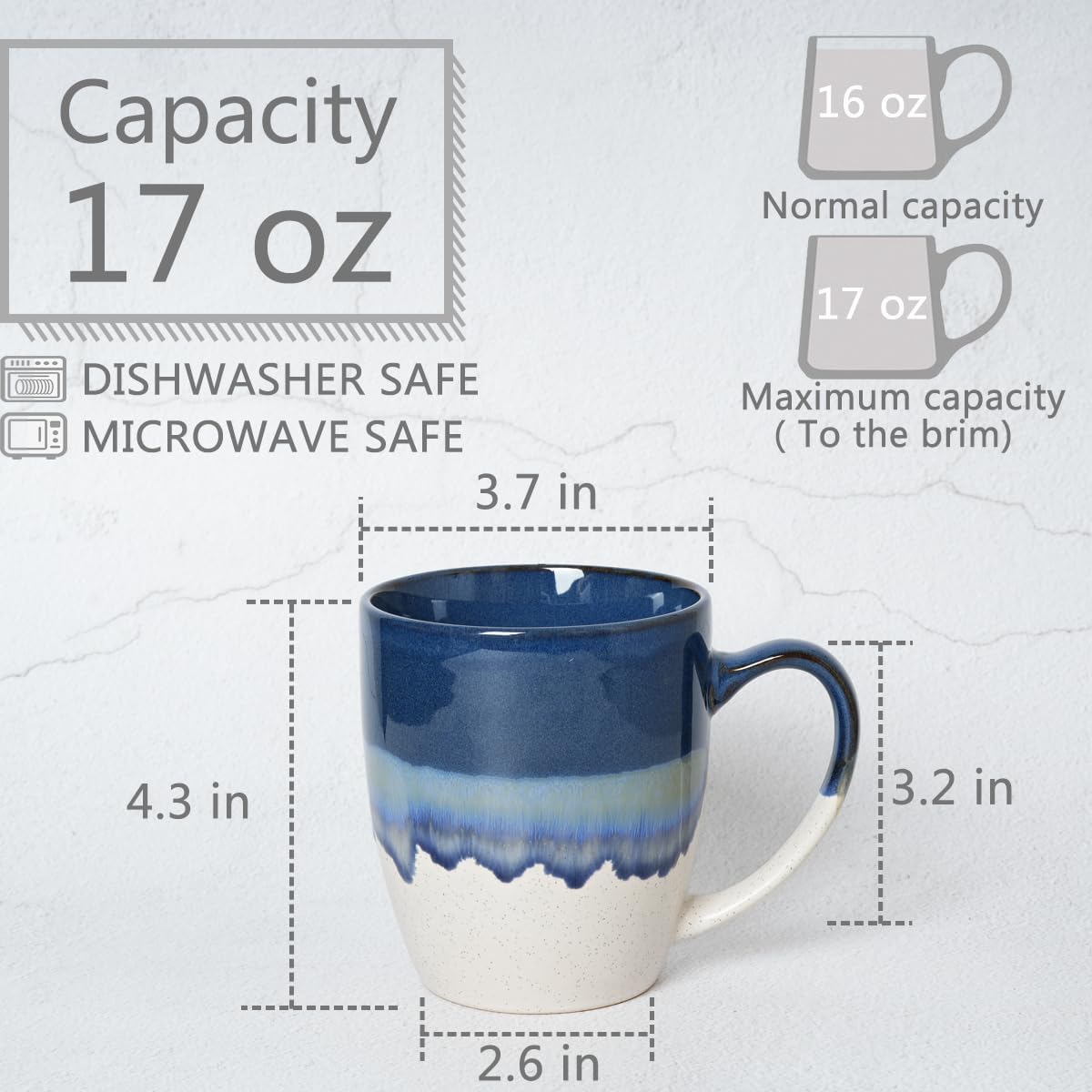 This ceramic coffee mug set has an appropriate capacity(17 oz), which will definitely meet your needs for office and home.
