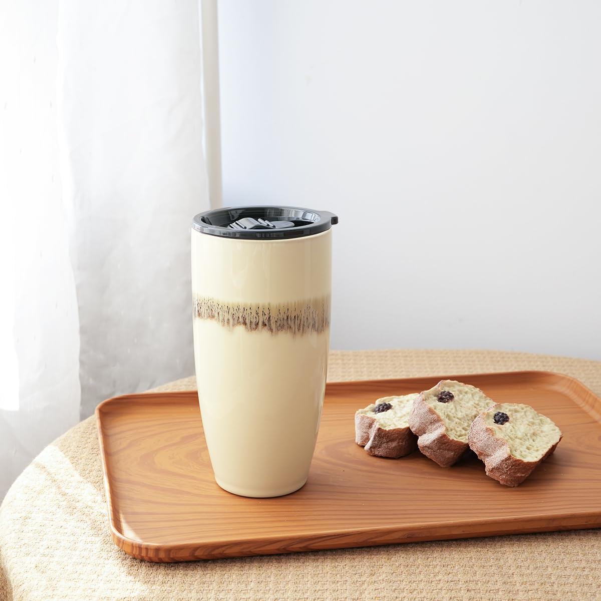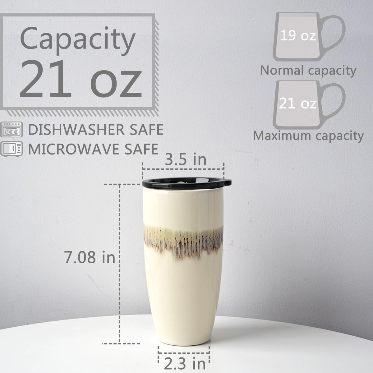 Bosmarlin Ceramic Trave Coffeel Mug with Lid, 21 oz, Portable Coffee Cup for Car Cup Holder, Microwave and Dishwasher Safe, Reactive Glaze