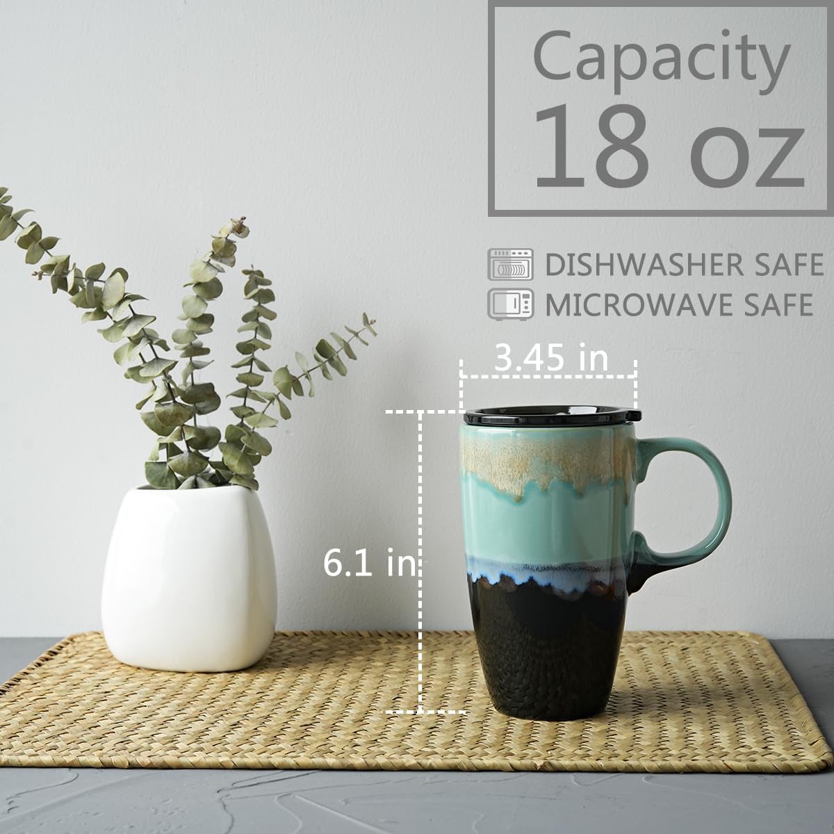 NOTICE: If the mug you receive does not fit with the lid, please contact us directly and we will send replacement. LARGE CAPACITY: This ceramic travel mug has a large capacity(18 oz), which will definitely meet your needs for office and home.