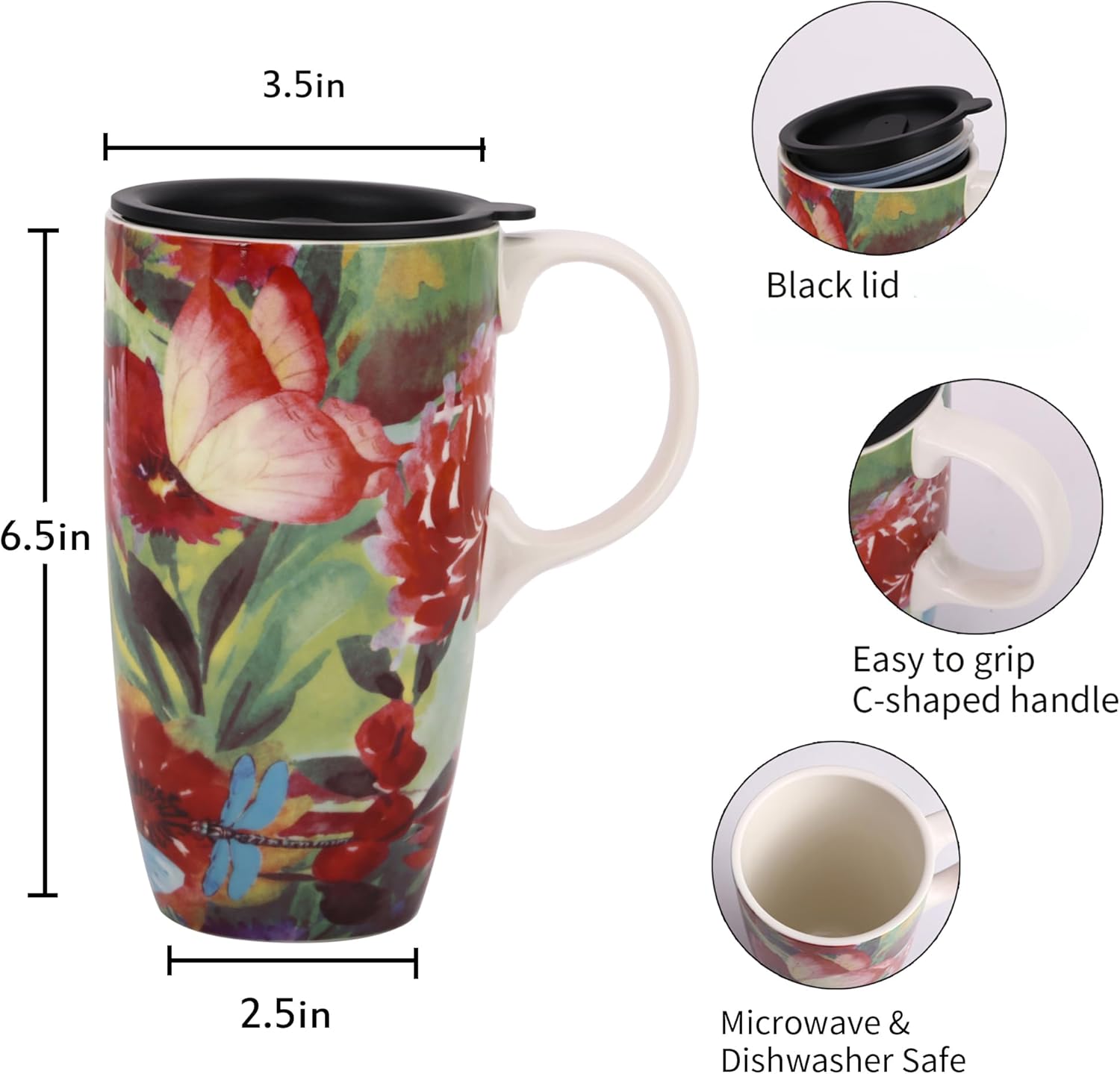 【FEATURES】Moderate handle, dishwasher, oven and microwave safe (remove lid before placing in microwave), suitable for car cup holders.