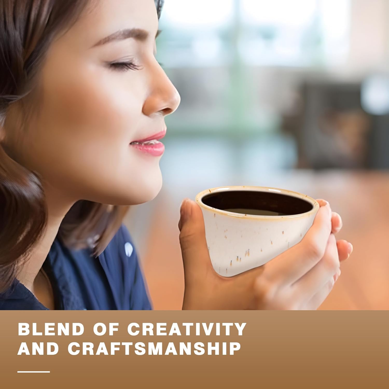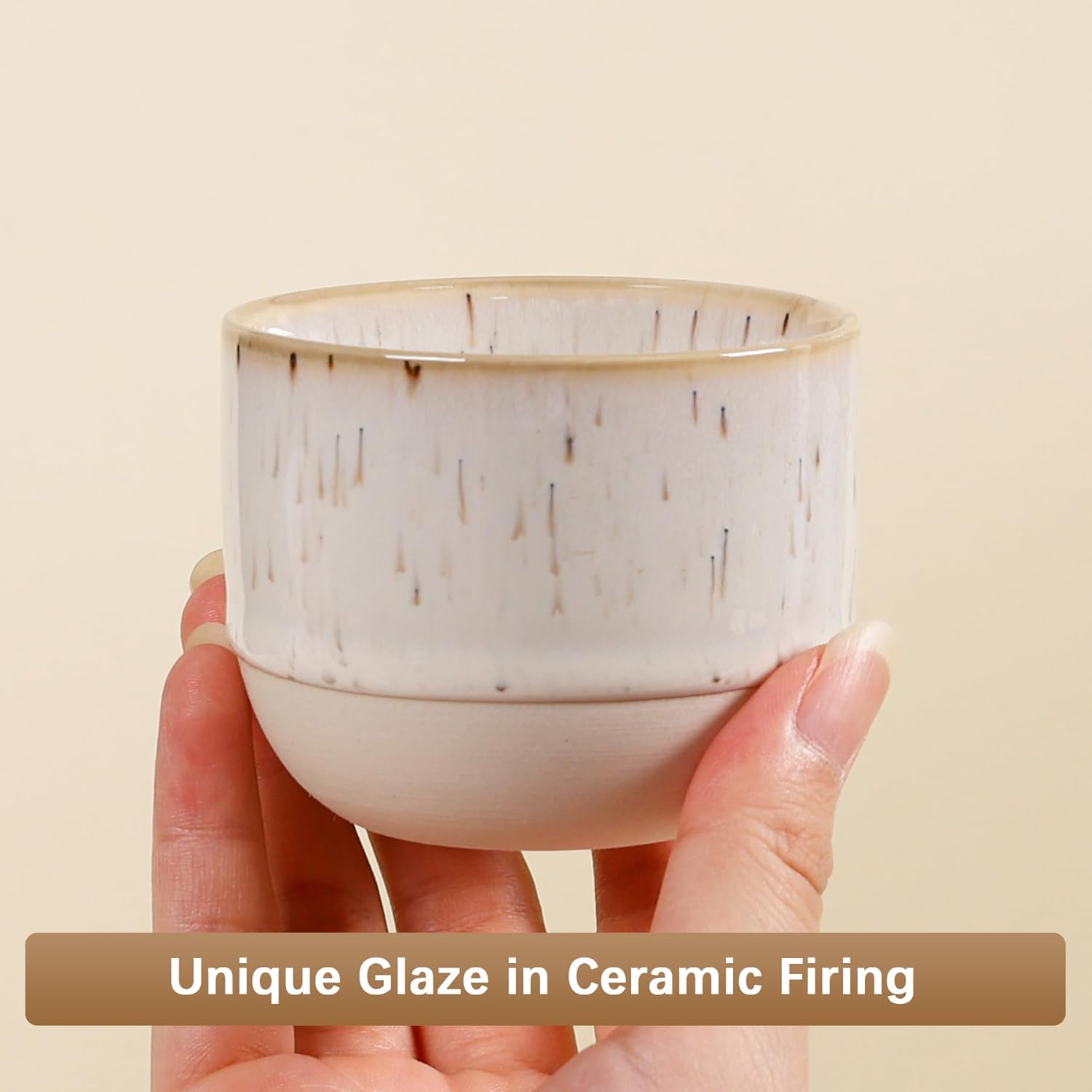 【Exquisite Ceramic Craftsmanship】Elevate your coffee ritual with our artisanal ceramic espresso cup set. Each piece is meticulously handcrafted to ensure a unique and elegant experience. The upper part of the cups transforms into a rich white hue during firing, adding a touch of natural warmth to your daily brew.
