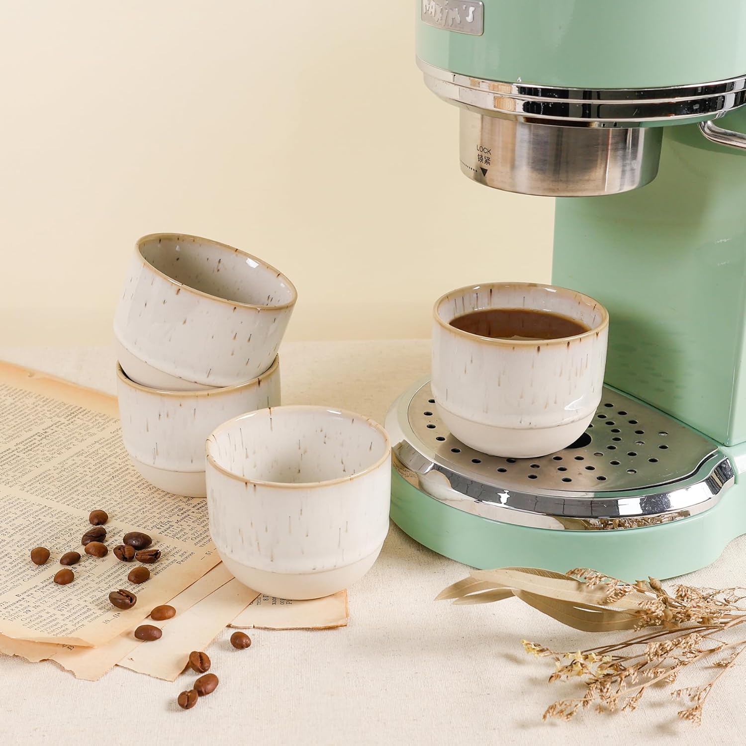 Ceramic Espresso Cups Set of 4, Double Walled Espresso Coffee Mugs for Nespresso Cups, Special glazed Demitasse Cups Expresso Coffee Cup for Espresso Machine (Speckled Off-White)