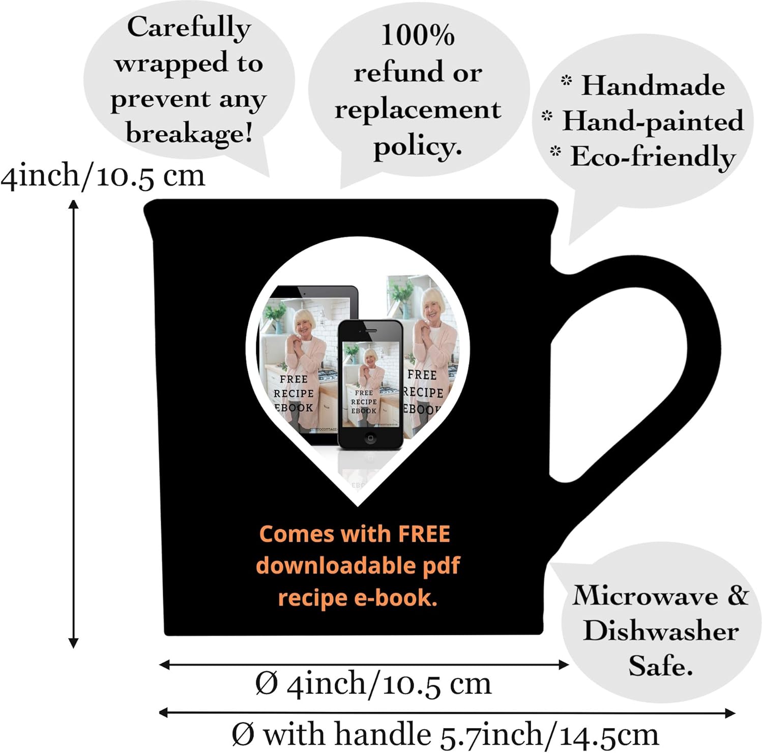 ❤️ COMES WITH FREE DOWNLOADABLE RECIPE E-BOOK!!! ❤️ – Our lovely mugs come in a rather large size – with 17.5oz/500ml it’s certainly bigger in capacity than those you might already have, which are known to be 350ml or less.