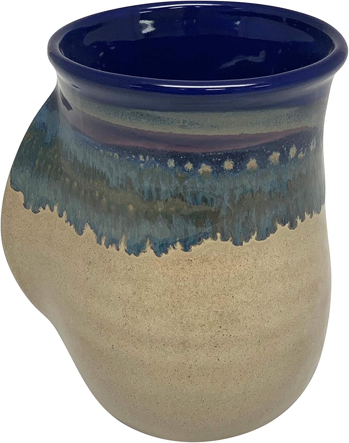 We are proud to offer American made pottery. We are a family run business that prides itself on making beautiful, functional pottery for all to enjoy. Clay in Motions original hand warmer cup is offered in a right hand version and a left hand version. Be sure to look at our handled mugs as well!