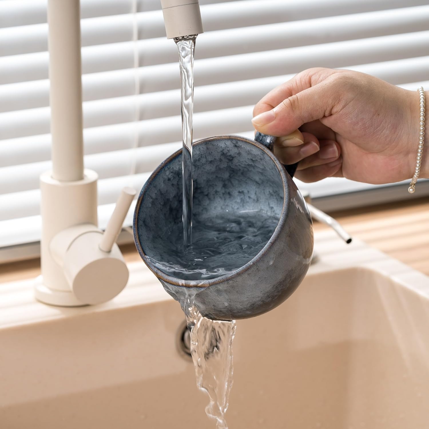 The smooth surface glaze effect is super convenient and practical. Don’t have to worry about coffee stains that are difficult to clean like white cups. This coffee cup only needs to be rinsed with clean water and is safe to use in the dishwasher, oven, microwave, and refrigerator.