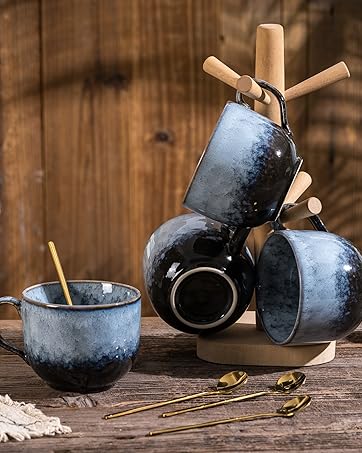 The smooth surface glaze effect is super convenient and practical. Don’t have to worry about coffee stains that are difficult to clean like white cups. This coffee cup only needs to be rinsed with clean water and is safe to use in the dishwasher, oven, microwave, and refrigerator.