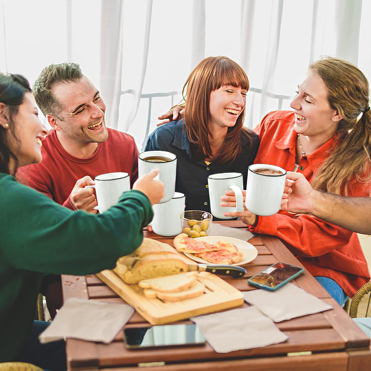 12 oz Coffee Mug Set: White coffee mugs are perfect size at 12 oz, they are the right weight and suitable for coffee, hot chocolate, cocoa, latte, milk. Coffee mugs set of 6 is enough for serving guests or enjoying with family, ideal for home, office, parties, restaurants, and festive occasions.