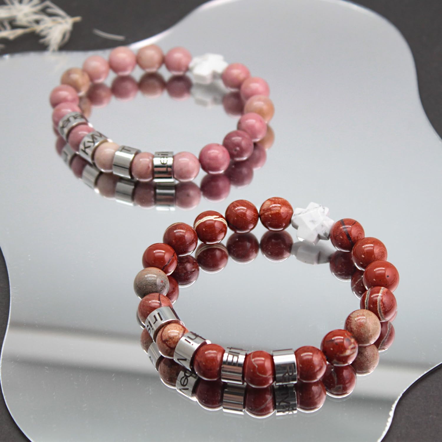 【Symbolic & Stylish】Each stone is chosen for its energy and aesthetic, creating a meaningful engraved bracelet.