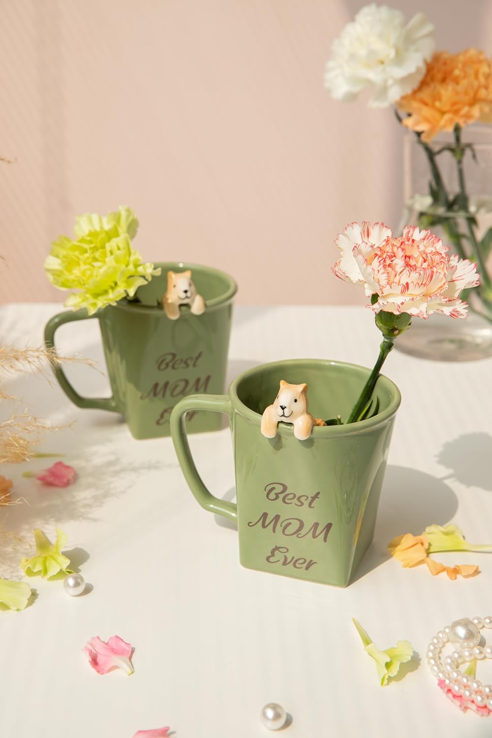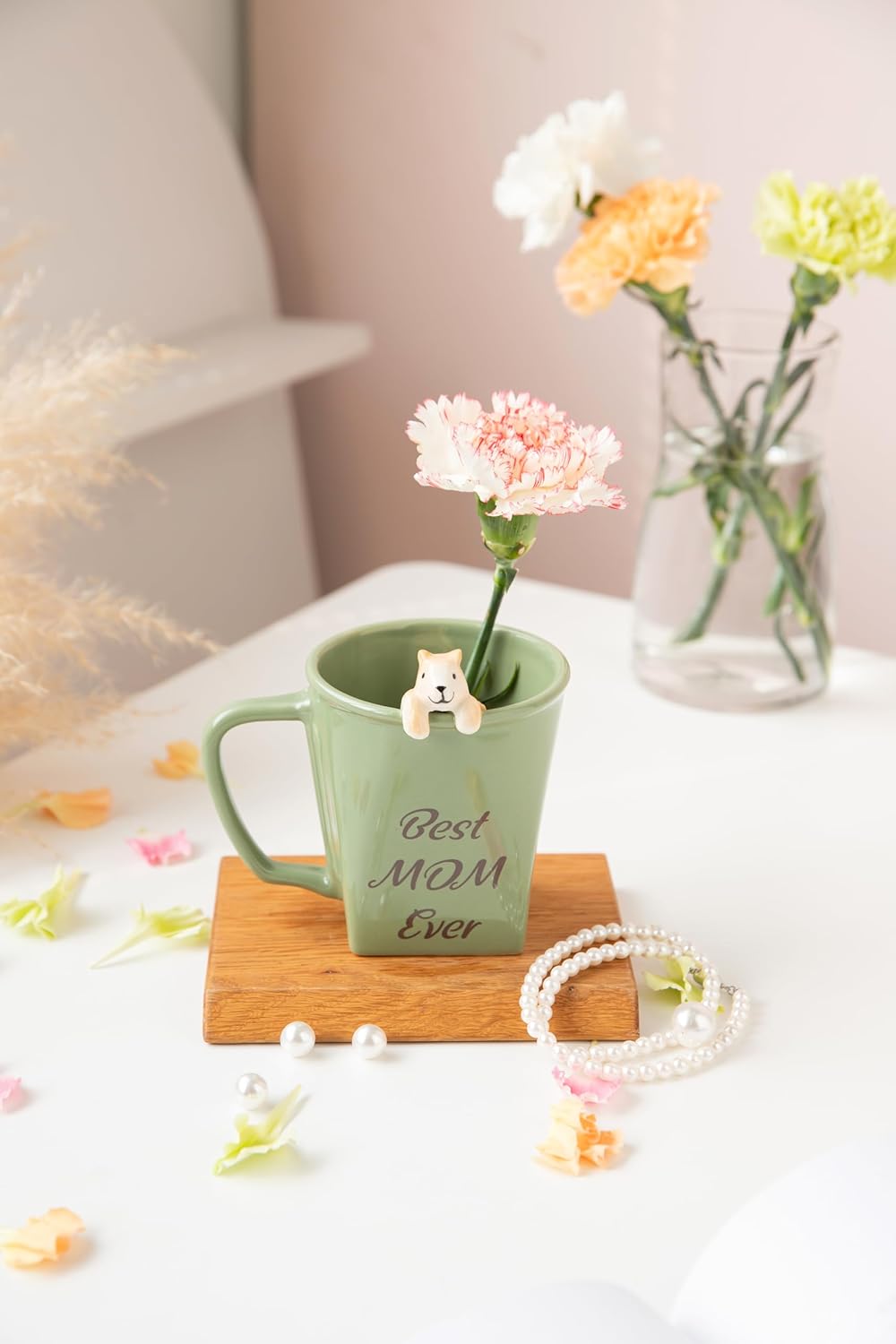 Artistic 3D Squirrel Sculpture & Meaningful Design: Each mug features a handcrafted ceramic squirrel clinging playfully to the cup, symbolizing a mother’s loving care and wisdom. The raised 3D texture creates a tactile experience unlike flat printed designs. ‘Best MOM Ever’ lettering is food-safe glaze that withstands daily washing, making it a lasting tribute to motherhood.