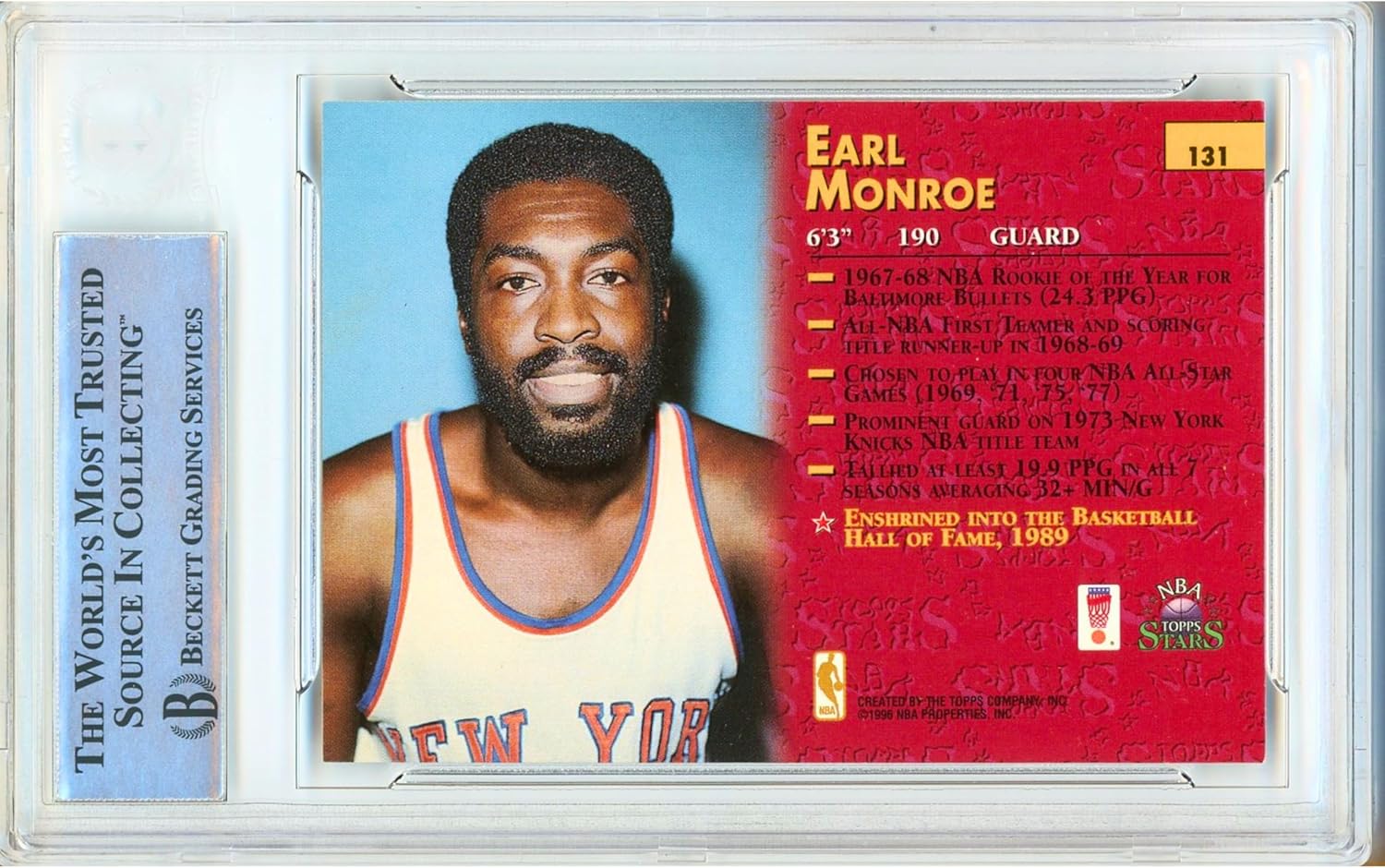 Authentic Autograph: Featuring an autograph from NBA legend Earl Monroe, this signed basketball card is encapsulated in a Beckett slab for authenticity.