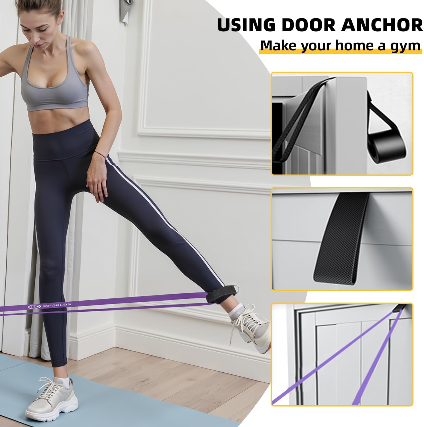 All-in-One Kit for On-the-Go Fitness:Beyond 6 bands: Includes door anchor + ankle straps for seamless setup anywhere! Train at home, travel light for hotel sessions, or hit the park—this portable gym fuels strength training, yoga stretches, and Pilates flows without limits. No excuses, just results!
