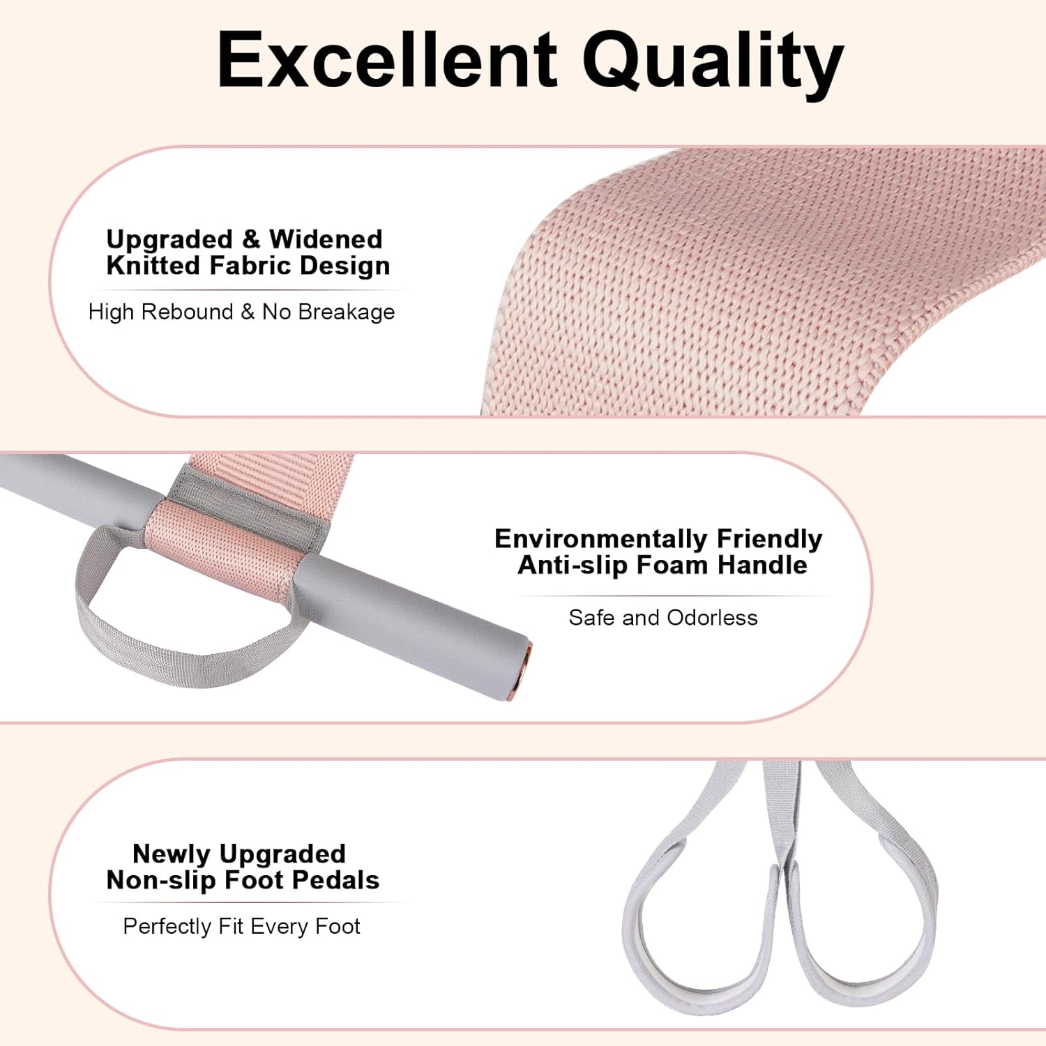✅Durable Fabric –The pedal puller resistance band was crafted from upgraded 8cm wide high-density and thick fabric (non-toxic & odorless) and reinforced stitching.Our exercise bands are softer on the skin than latex and resist snapping and withstand the rigors of daily high-intensity training, outlasting ordinary latex bands.