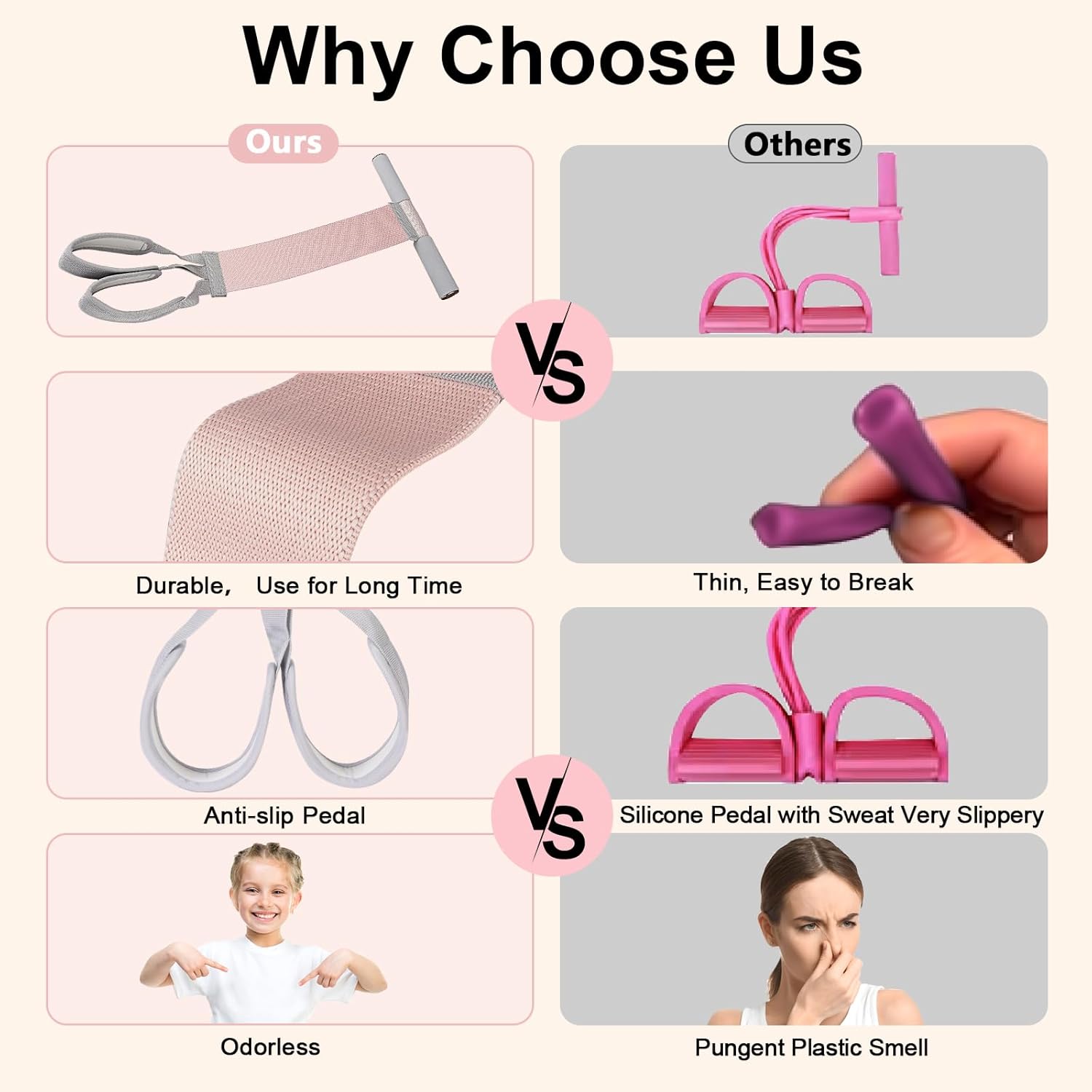 ✅Portable Using — Includes 1pcs pink pedal puller resistance rope+1pcs figure 8 exercise band for instant use.This lightweight and portable resistance band fits easily into your bag, making it perfect for workouts on the go. Enjoy slimming training anytime, anywhere. You can use these resistance exercise band sets in the privacy of your home, hotel room, office, or even outdoors.