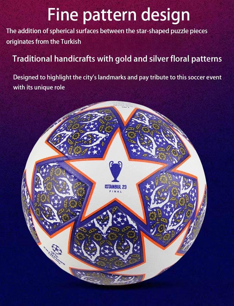 Type: Champions League match ball The classic 32-piece leather structure design and the 2800 circles of nylon winding ensure the roundness promotes a smooth flight trajectory Available in size 5 only, it is perfect for players! make your football pass accurately
