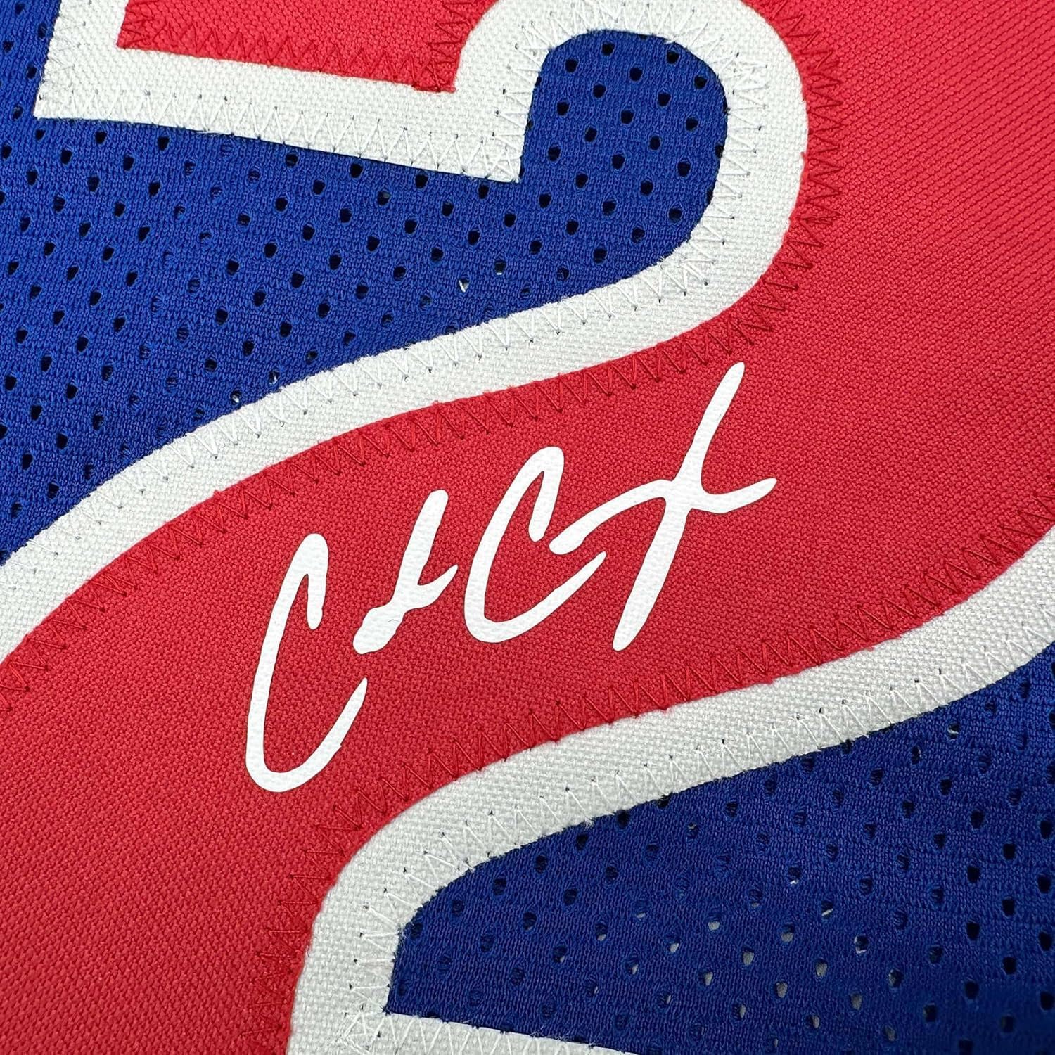 Framed Facsimile Autographed Cade Cunningham 35×39 Detroit Blue Reprint Laser Auto Basketball Jersey