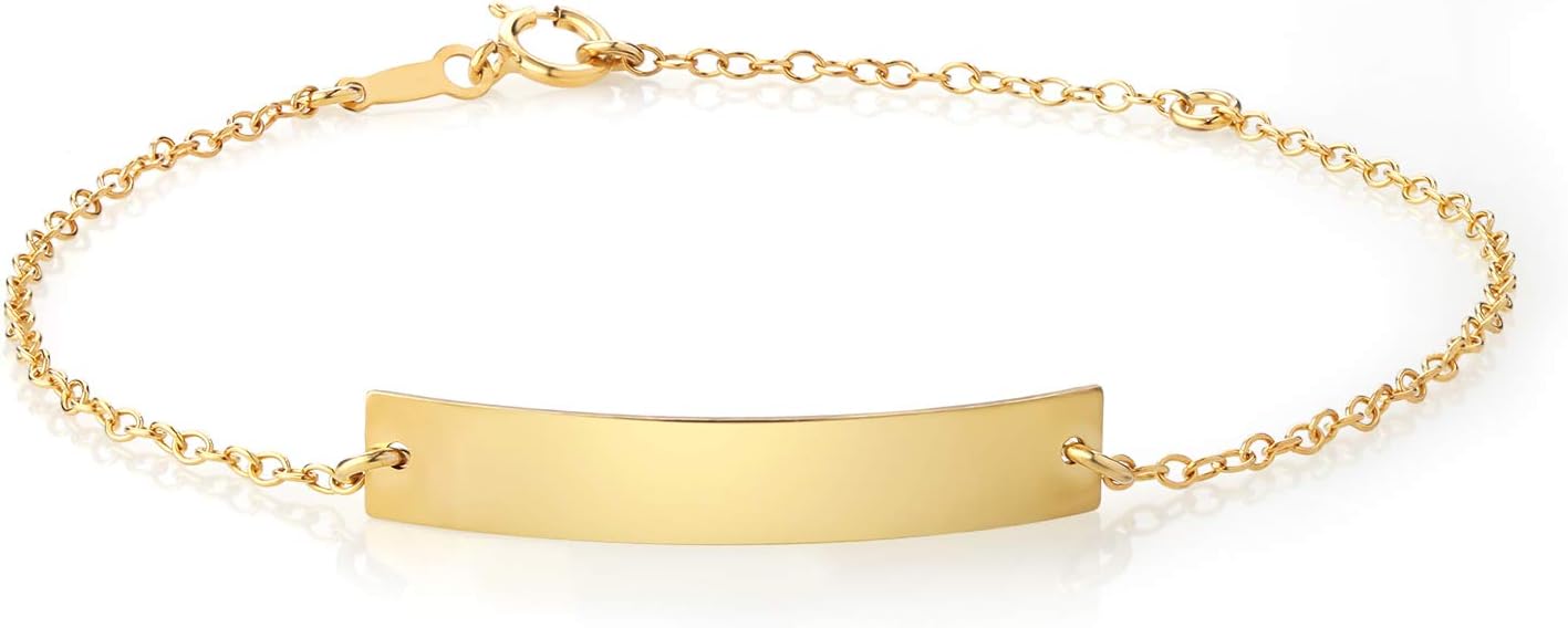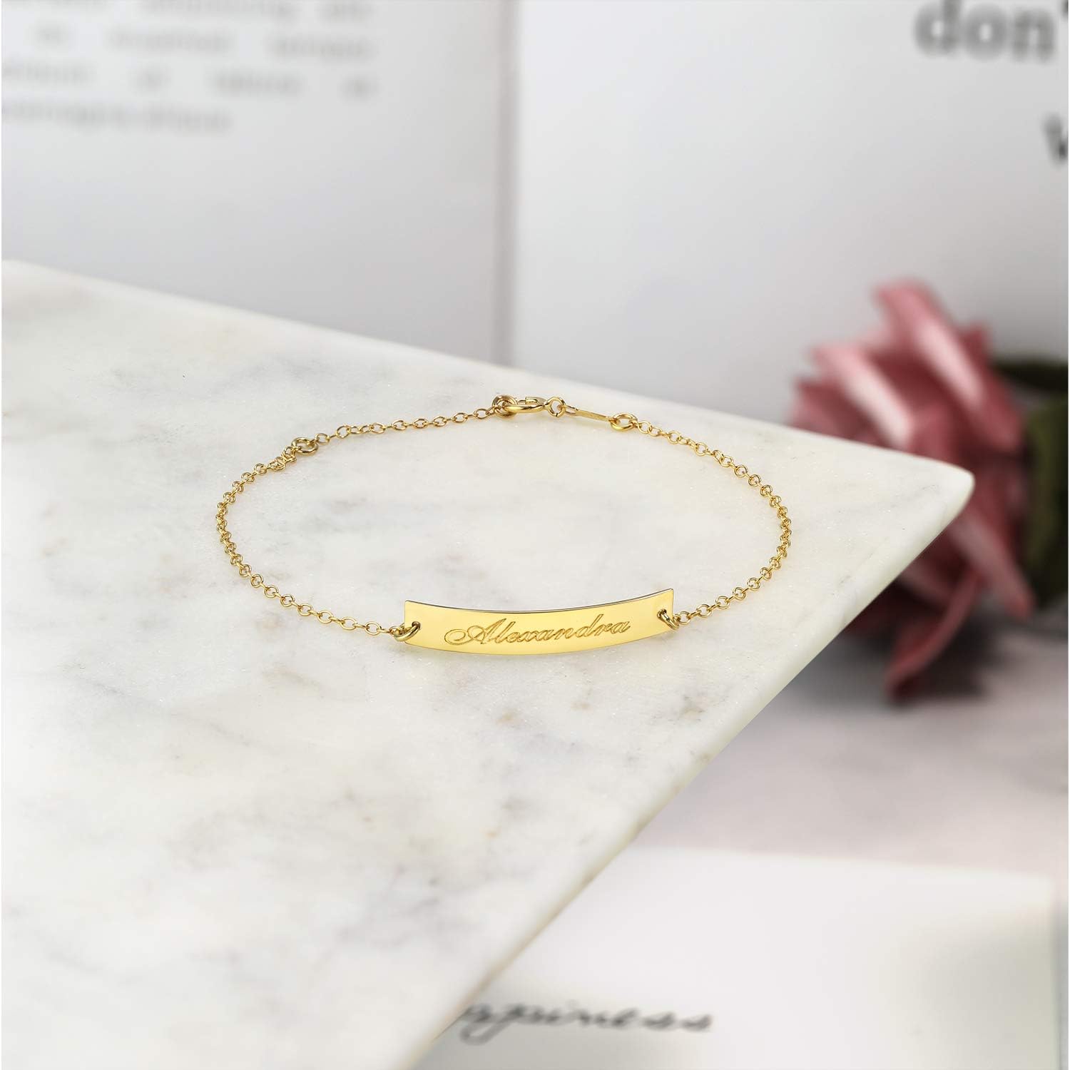 Gem Stone King 14K Gold Filled Personalized Custom Free Engraving Lazer Cut 30X5MM Adjustable Chain ID Name Bar Bracelet For Women