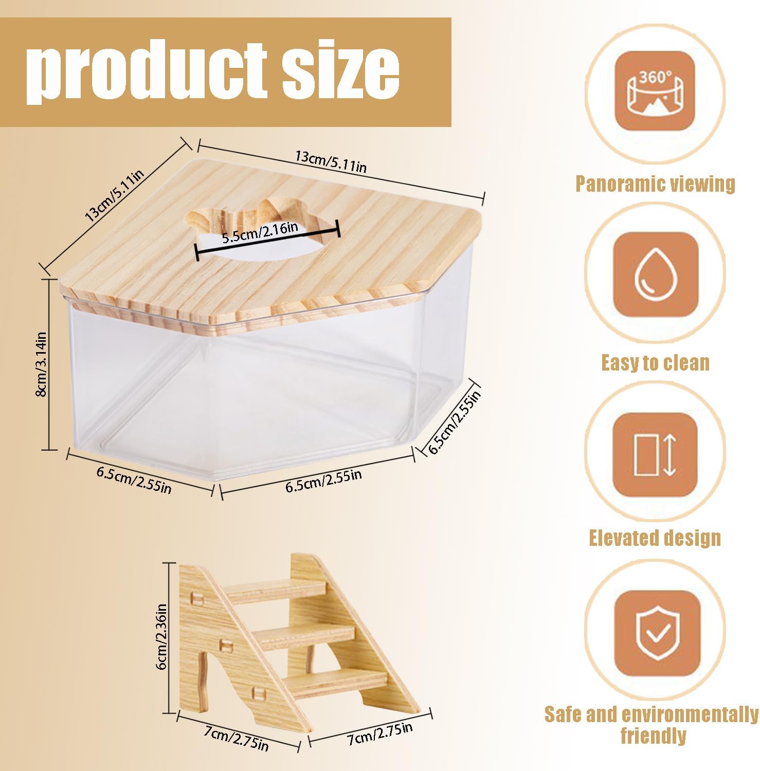 Enhanced Comfort and Safety: This sand bath container features a secure assembly and a top natural wooden cover that enhances structural stability, preventing tipping and ensuring the safety of your beloved hamster.
