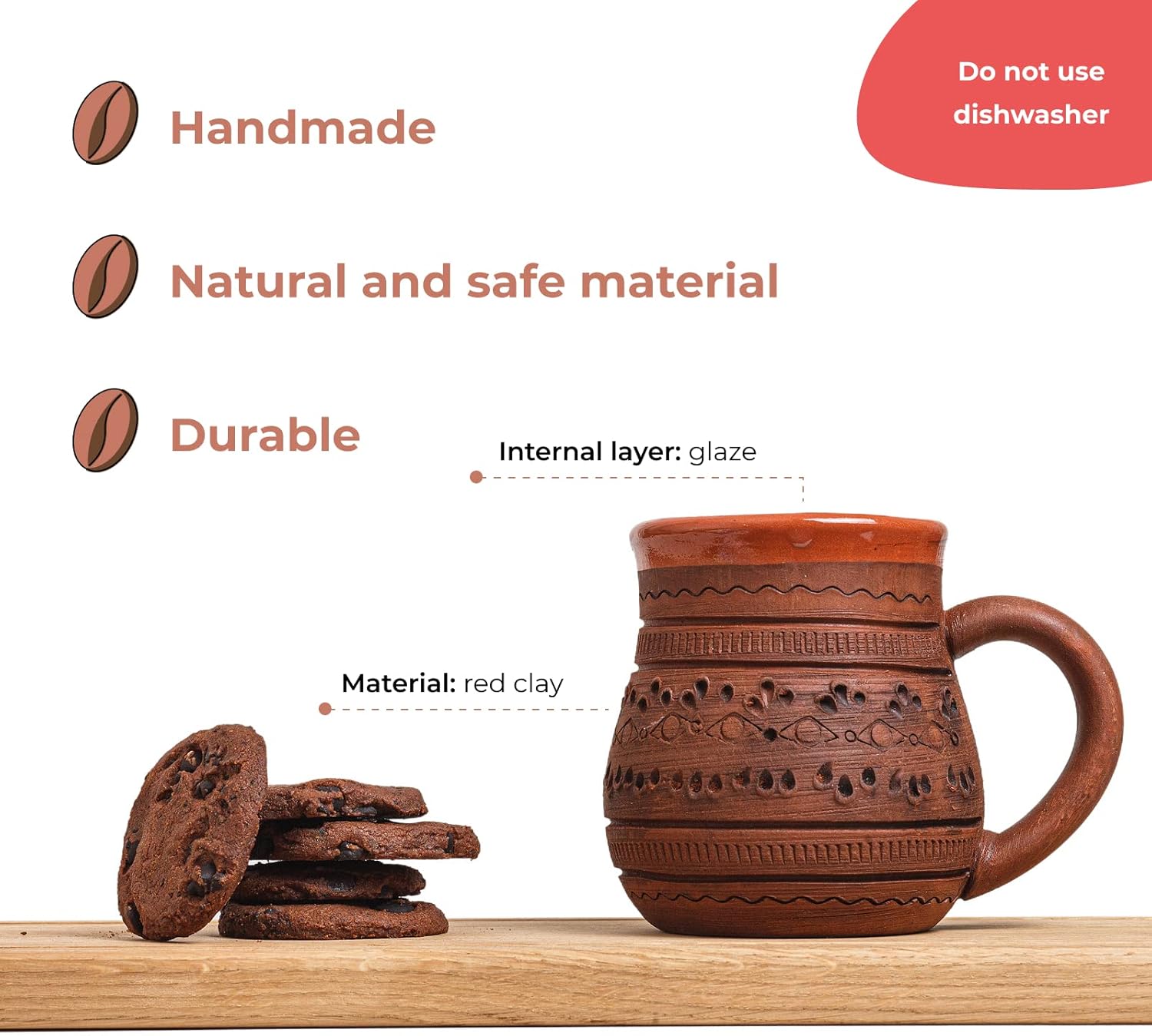✅ Cannot be machine washed! This red clay coffee mugs handmade is very eco-friendly and perfectly maintains and maintains the temperature of the contents. The design of a pottery clay cup is similar to viking coffee mugs.