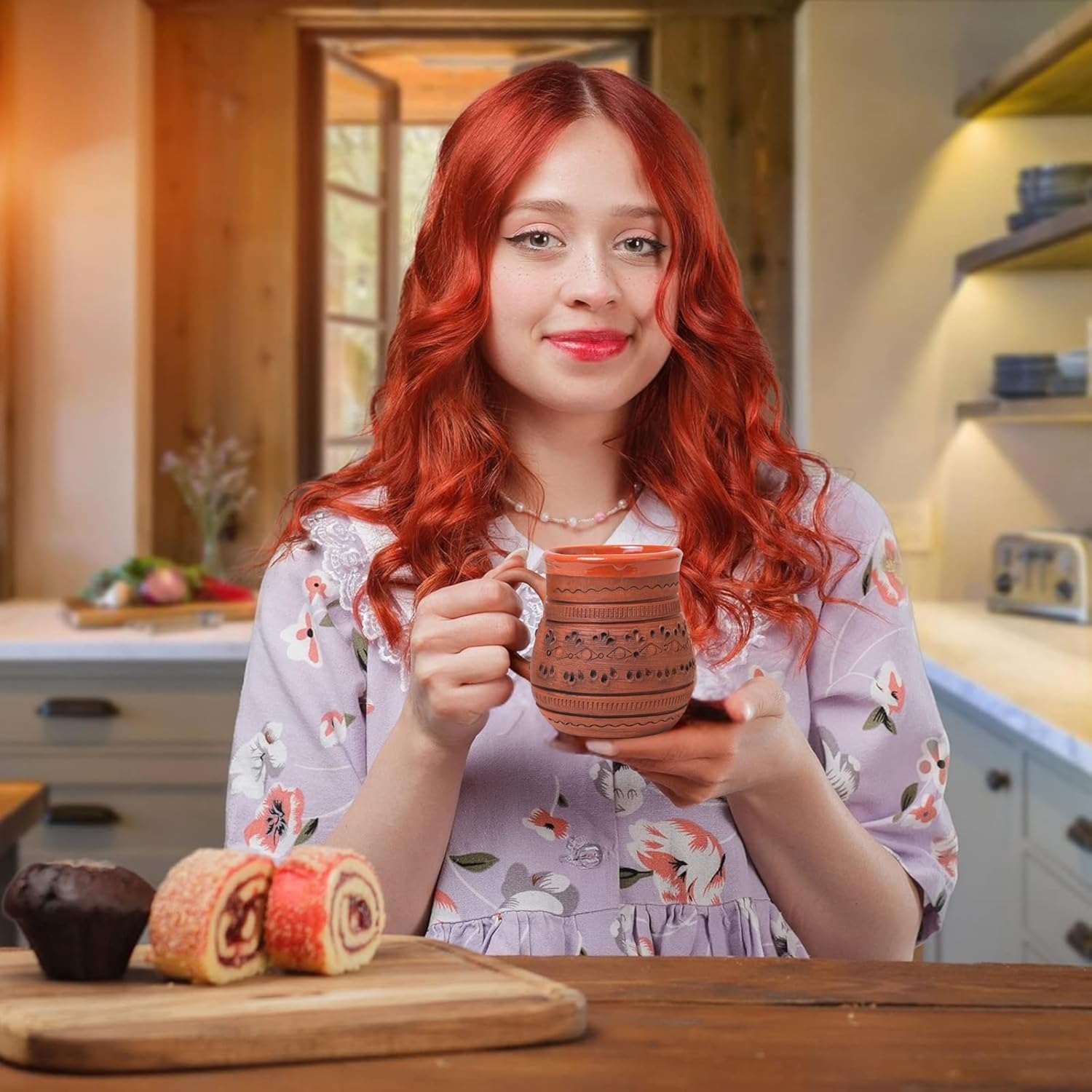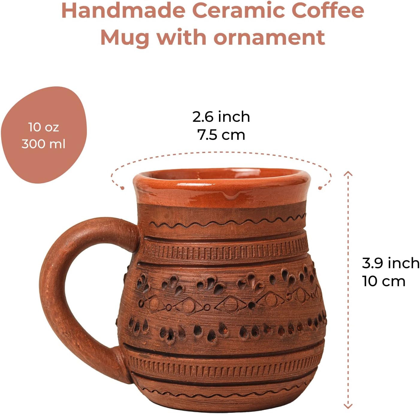 ✅ The pattern on the Clay Coffee Mugs and the dimensions may vary slightly, since each clay Clay Coffee Mug is made individually by the hands of a potter.