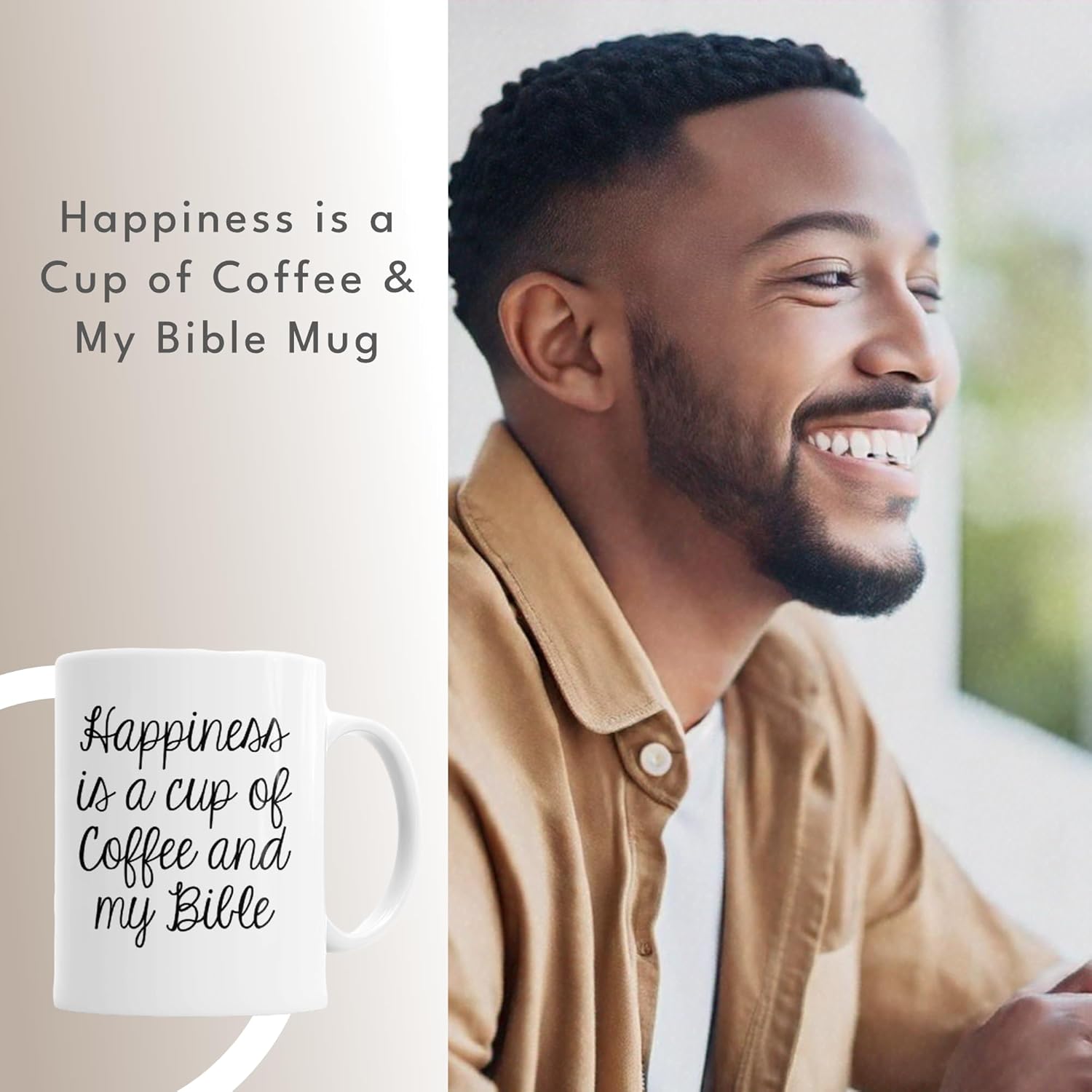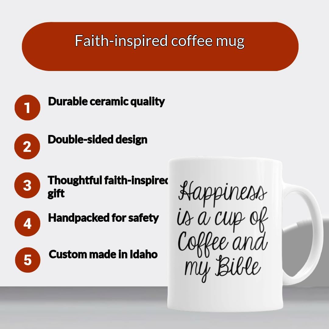 Happiness is a Cup of Coffee & My Bible Mug – Ceramic Christian Gift for Women