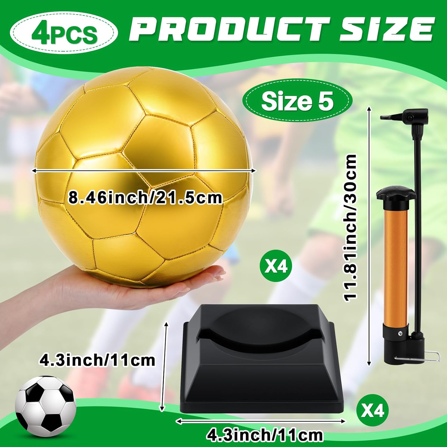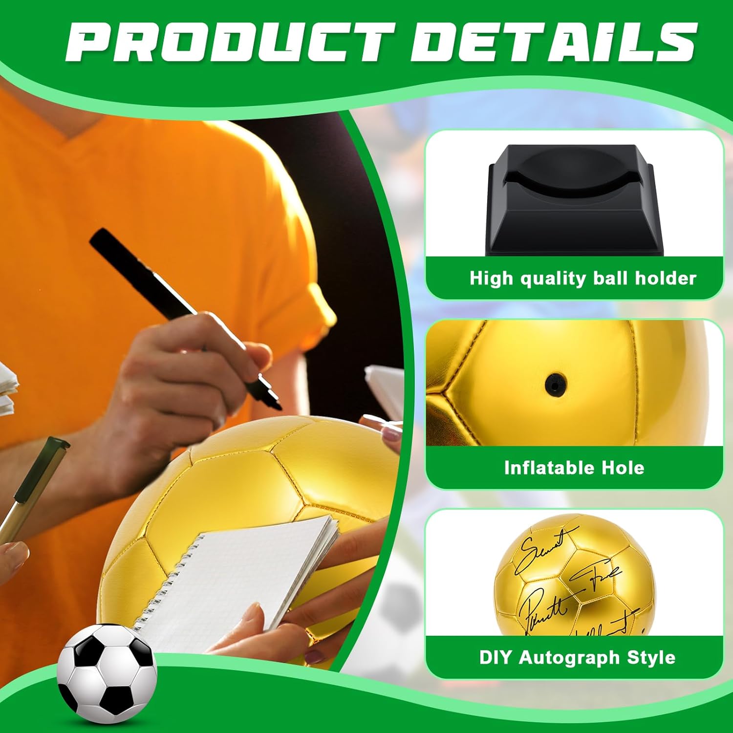 Hiboom 4 Pcs Gold Autograph Soccer Ball with Display Stand Air Pump for Trophies Anniversary High School College Coaching Gift Awards Championship Party