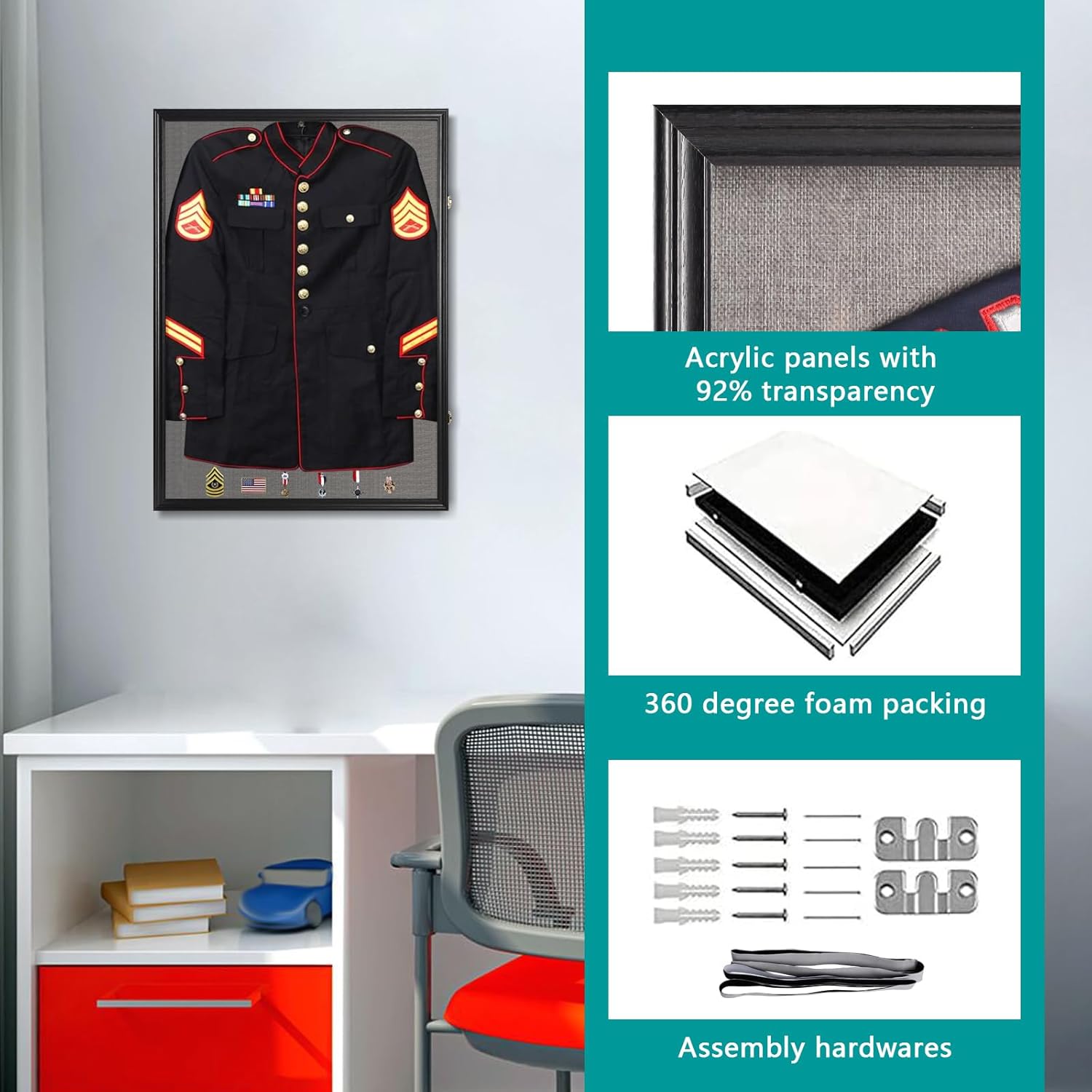 ONE SIZE FITS ALL SPORTS JERSEY – Iheipye Large size Jersey display frame 37×26.5×2.55 inches fits most sports jerseys such as Baseball, Basketball, Football, Soccer, Hockey etc. Make it a great gift for sports fans! It can also be used as a shadow box to display military uniform, graduation memorabilia and other cherish memories.