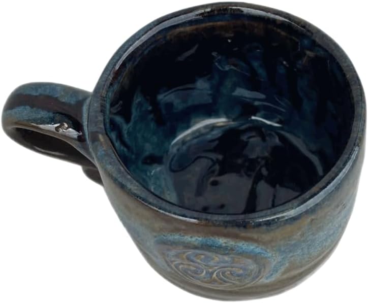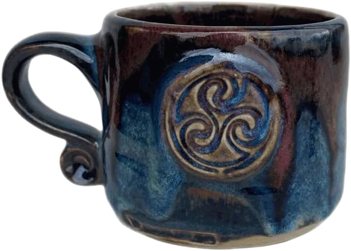 Embrace the symbolic allure of our handcrafted mug, made of durable ceramic. Rooted in ancient Celtic traditions, the triskelion’s three spirals convey life’s interconnected aspects—past, present, and future. This mug is measured at 3 inches tall and 4 inches wide, and with every sip, you will experience a harmonious blend of cultural richness and practicality.