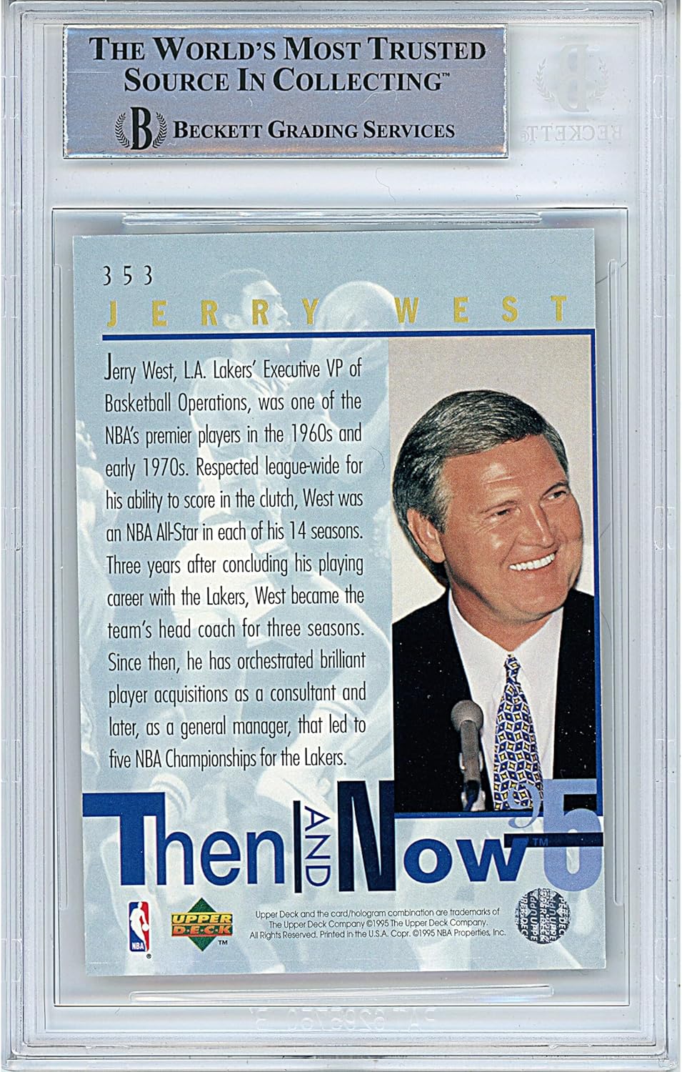 Jerry West Signed Basketball Card, 1994-95 Upper Deck Then and Now #353, Beckett Authentic Autograph Slab, Los Angeles Lakers Autographed Memorabilia LA