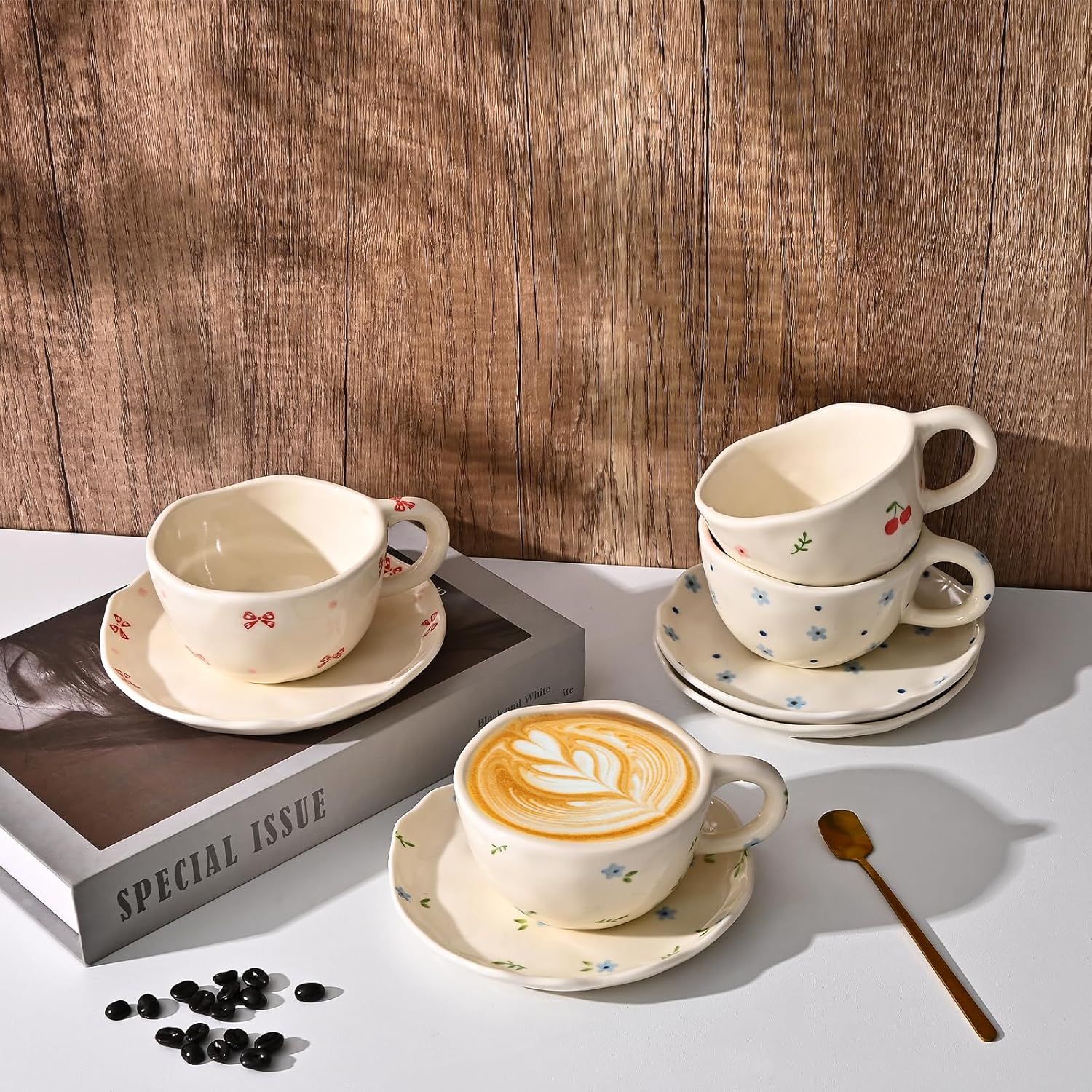 Adorable Coasters: With creative flower printed saucer; they are a great decoration for your coffee table and you will enjoy your coffee; Whether it’s sunny or cloudy or rainy; our cups will always be with you