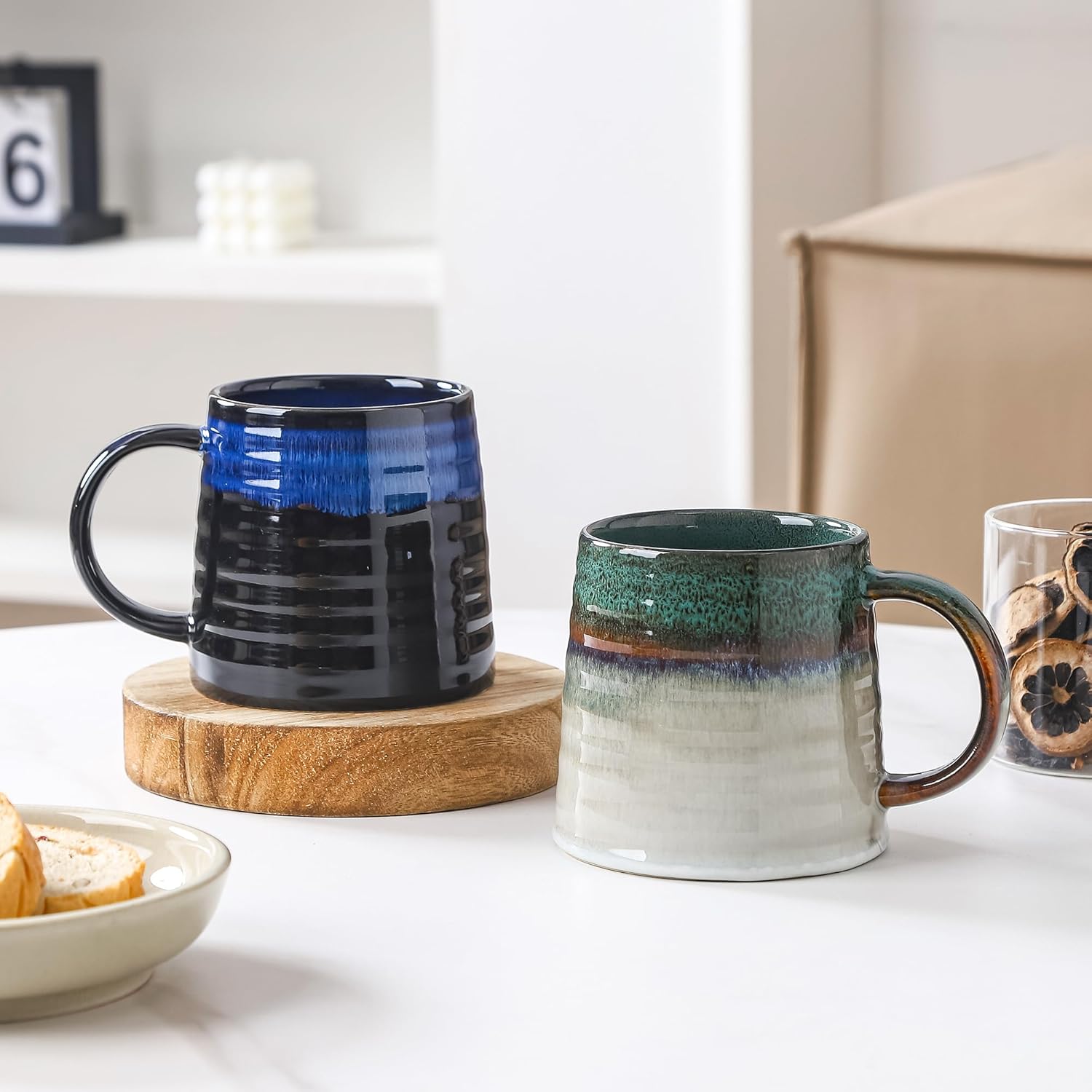UNIQUE GLAZE: The handmade pottery mug uses special reactive glaze technology, give each cup a unique and beautiful color. The premium ceramic and glaze, well made and heavy, suitable for hot and cold drinks. The dishwasher and microwave are safe