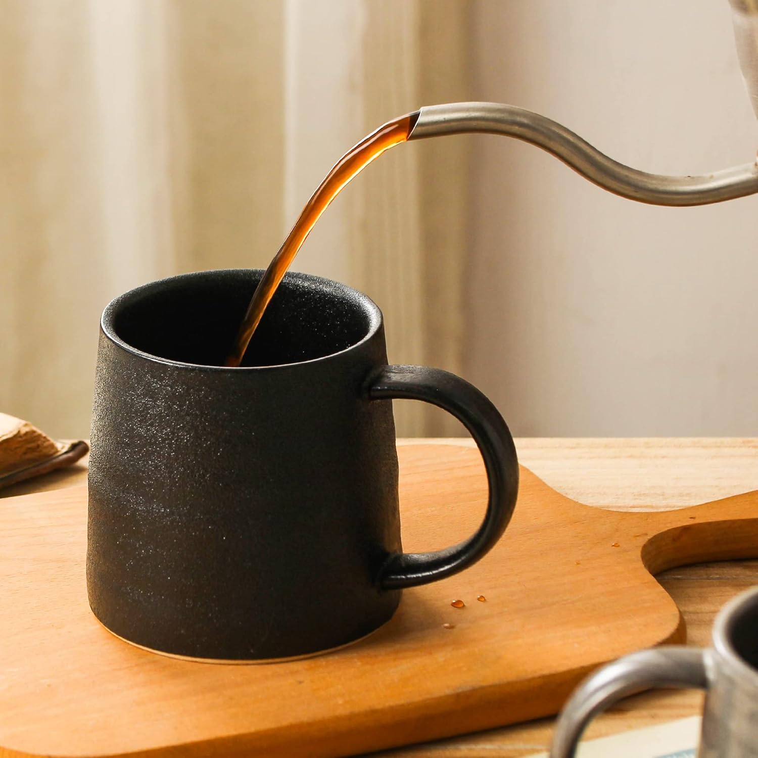 WIDE BASE DESIGN: The base of our coffee cups is designed to be bigger than the top, the wide base is very stable and sturdy, no worry about getting knocked over. And the design of the generous handle is so easy and comfortable to hold