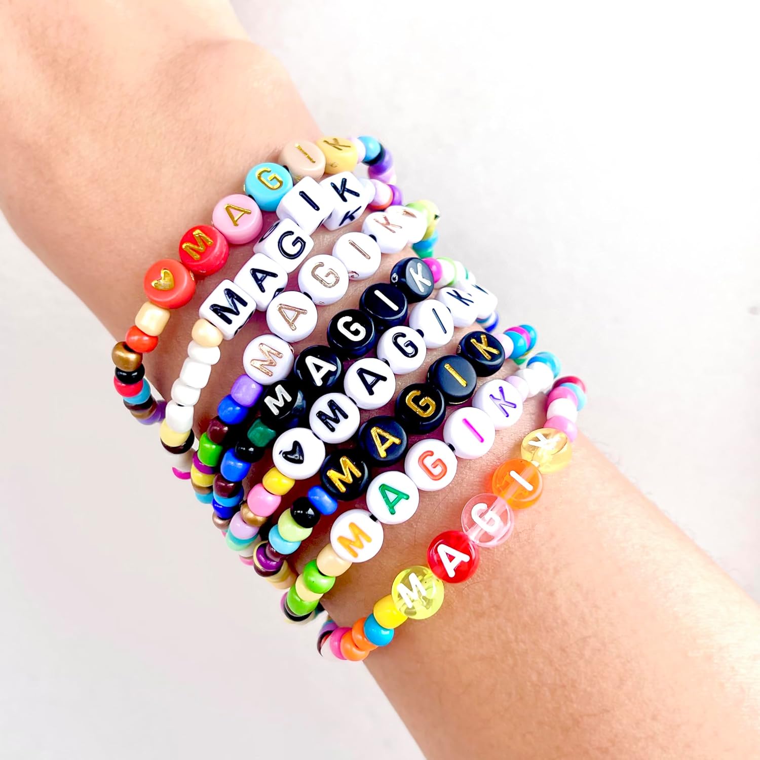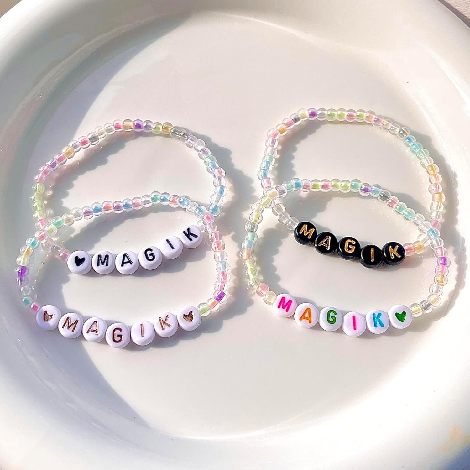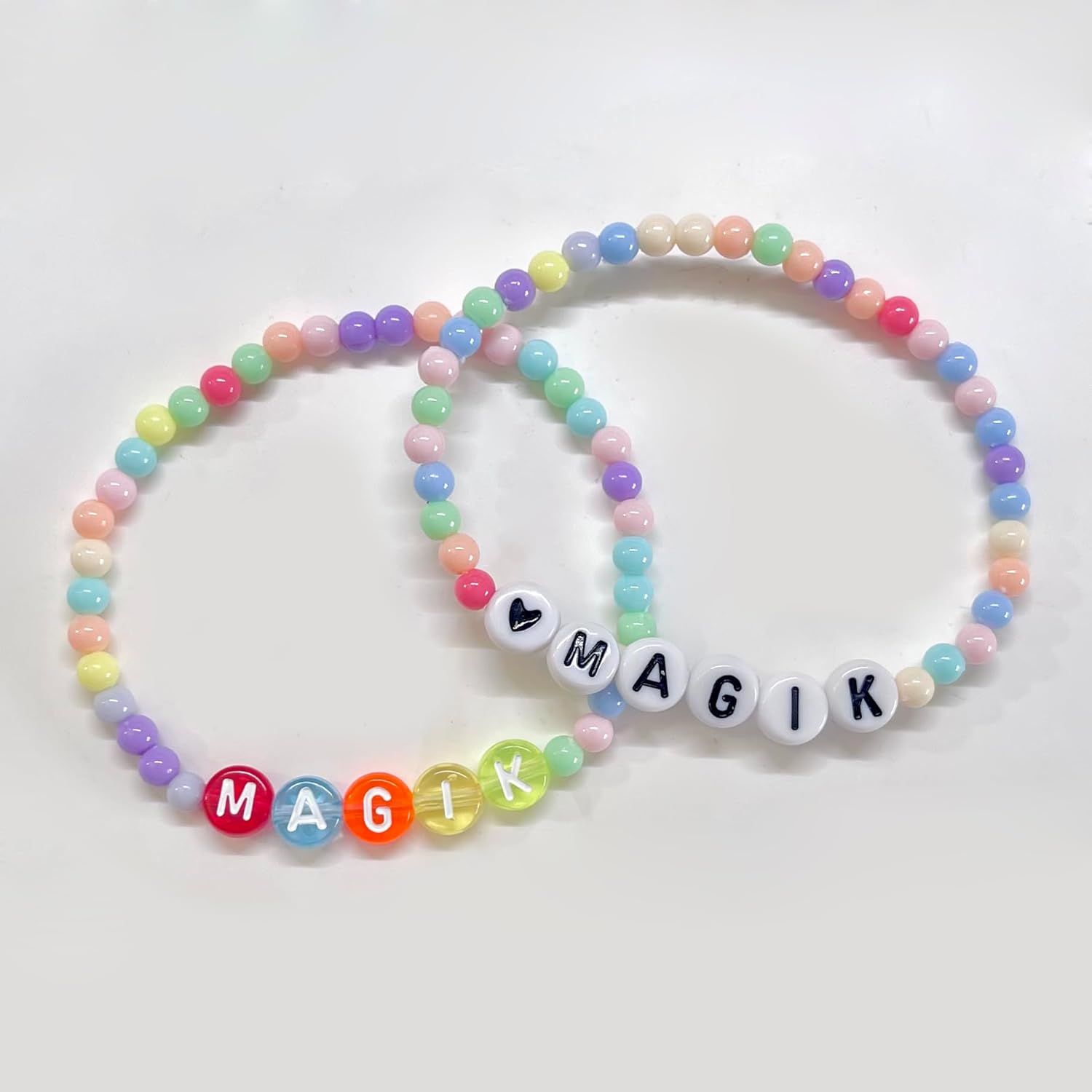 Magik 2 Pack Handmade Custom Name Seed Bead Bracelet or Anklet – Mama Stretch Beaded Bracelet for Women, Girls | Thoughtful Holiday Christmas, Mother’s Day, Birthday Gift