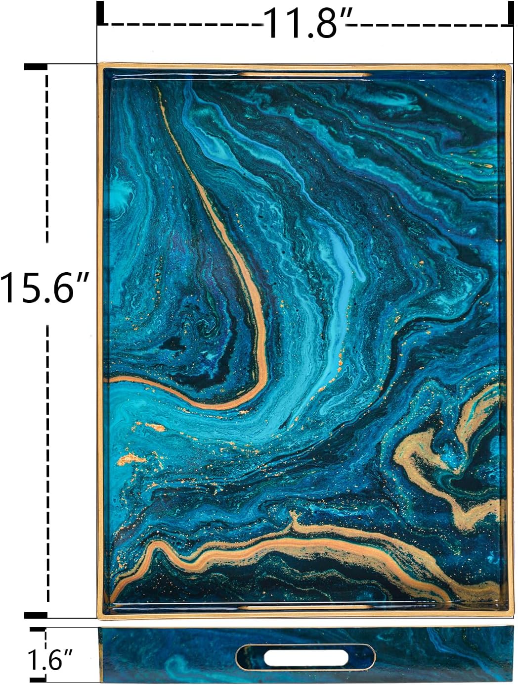 SERVING DECORATIVE TRAY: The melamine serving tray inner bottom surface features blue marbling pattern and a chic gold top edge, the clear and attractive appearance makes it easy to match with any decoration, adding gorgeous color and fun pattern to your decor.