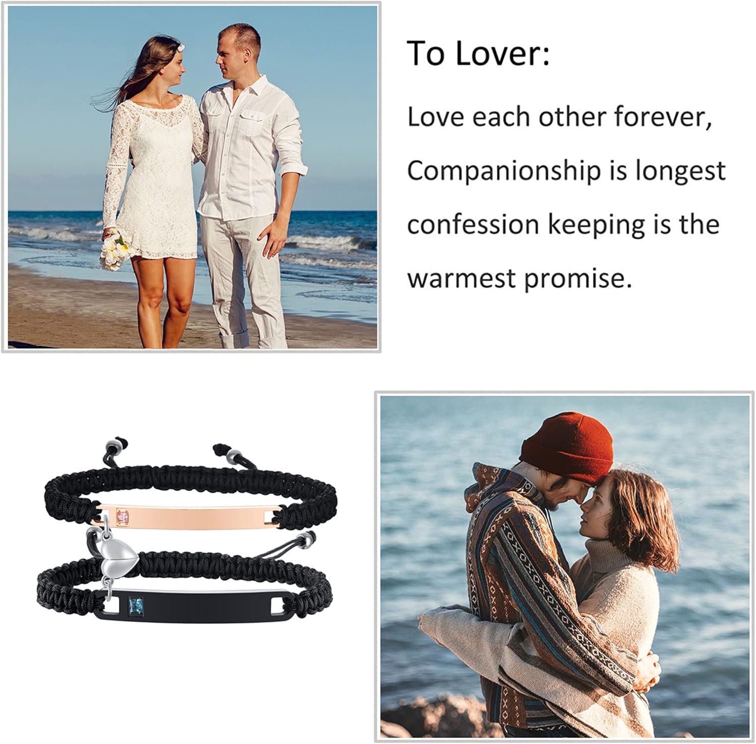 Customized Couple bracelets are Ideal Gifts for husband, boyfriend, girlfriend, wife, lover, couple as a unique and meaningful gift for Valentine Day, Birthday, Christmas, Wedding, Engagement, Promise, Anniversary Day, Wedding etc. Truly special and meaningful gift to your loved one