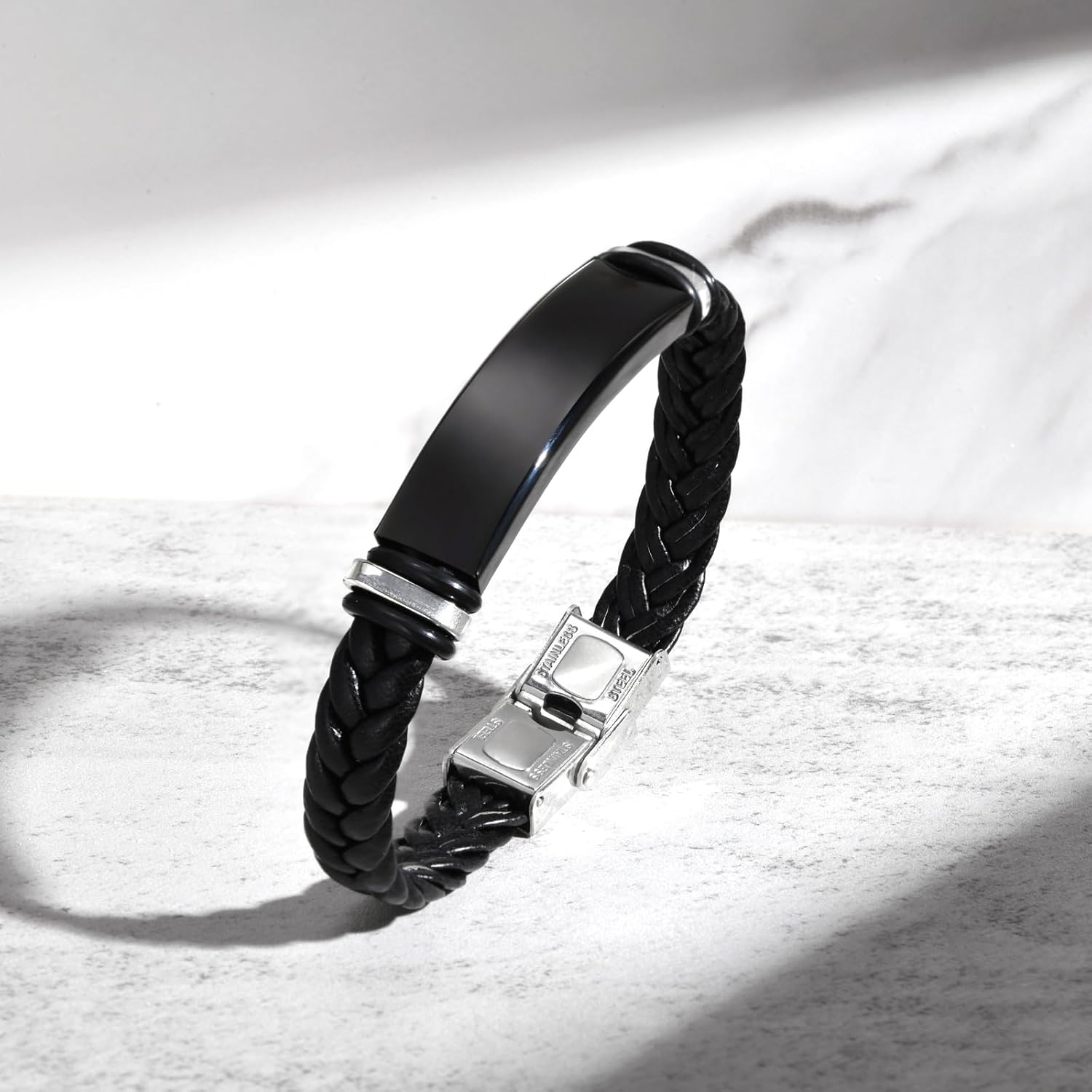 MEALGUET Personalized Leather Bracelet for Men: Braided Leather Engraved Name ID Wristband for Boyfriend, Husband, Dad – Custom Gift for Valentine’s Day, Birthday, Anniversary