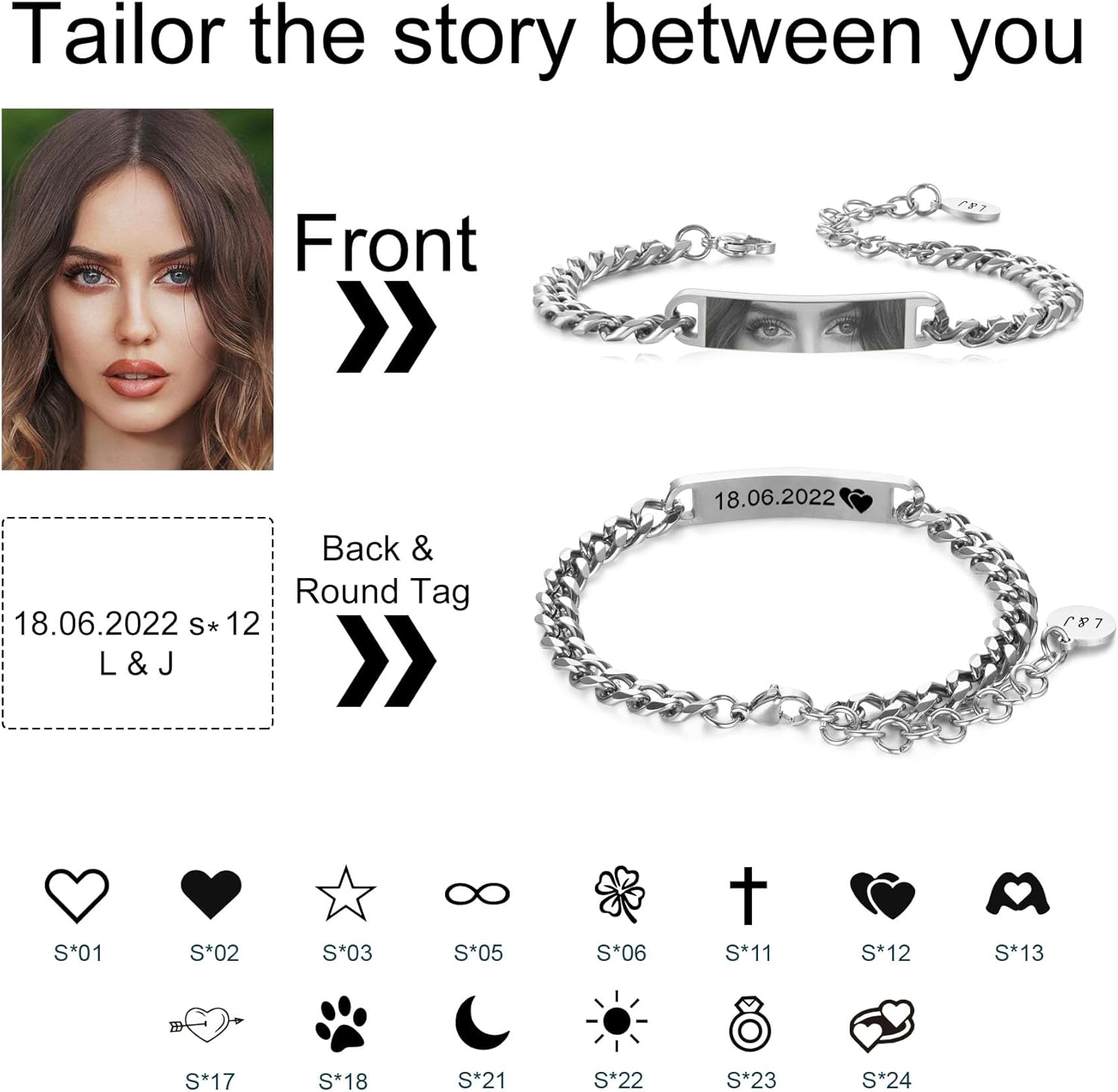 Engraving a photo of your lover’s eyes on the bracelet symbolizes dedicated love for each other. No matter where you are, my eyes are always following you.