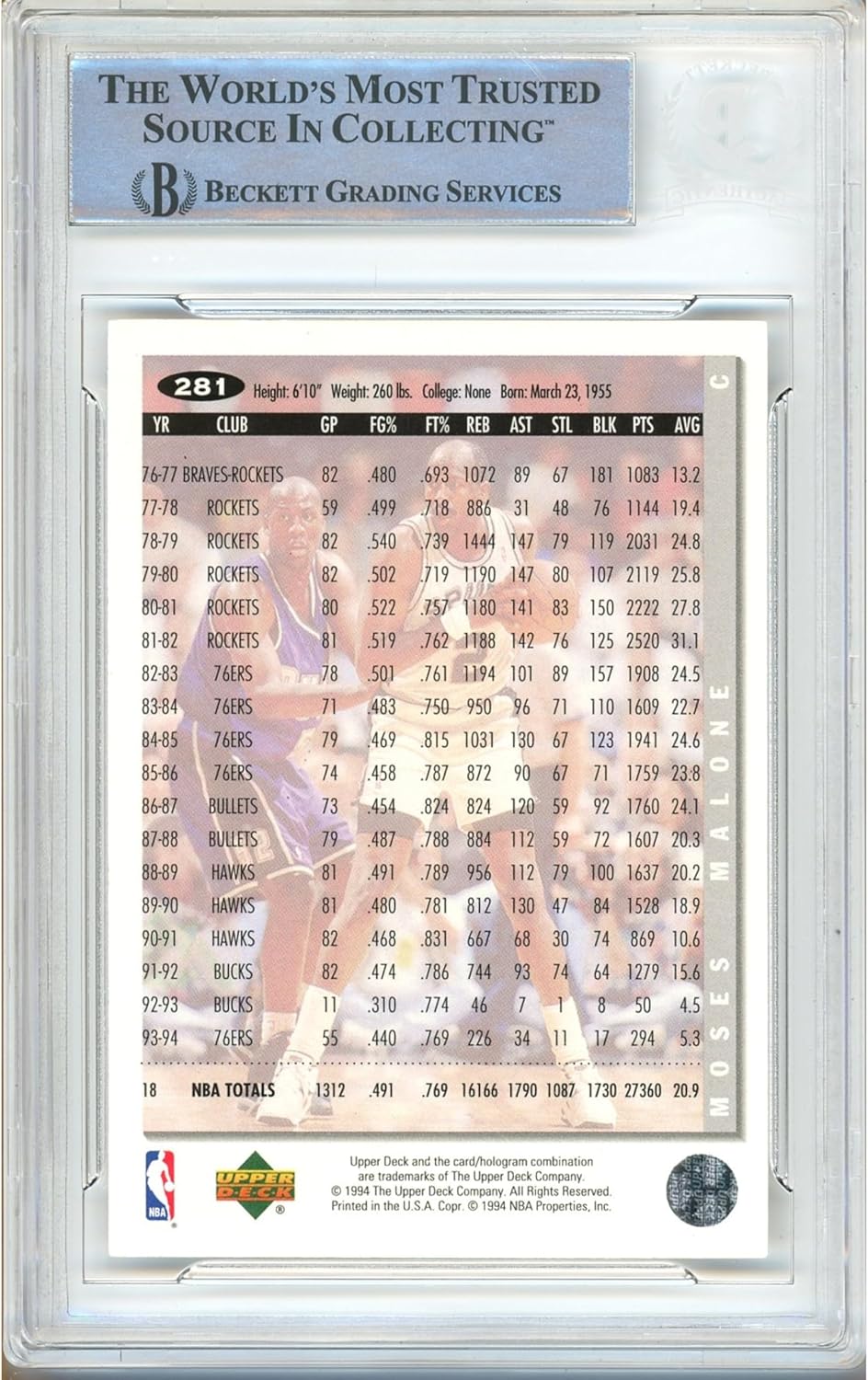Authentic Autograph: This 1994-1995 Upper Deck Collectors Choice #281 card features an authentic autograph from NBA legend Moses Malone.