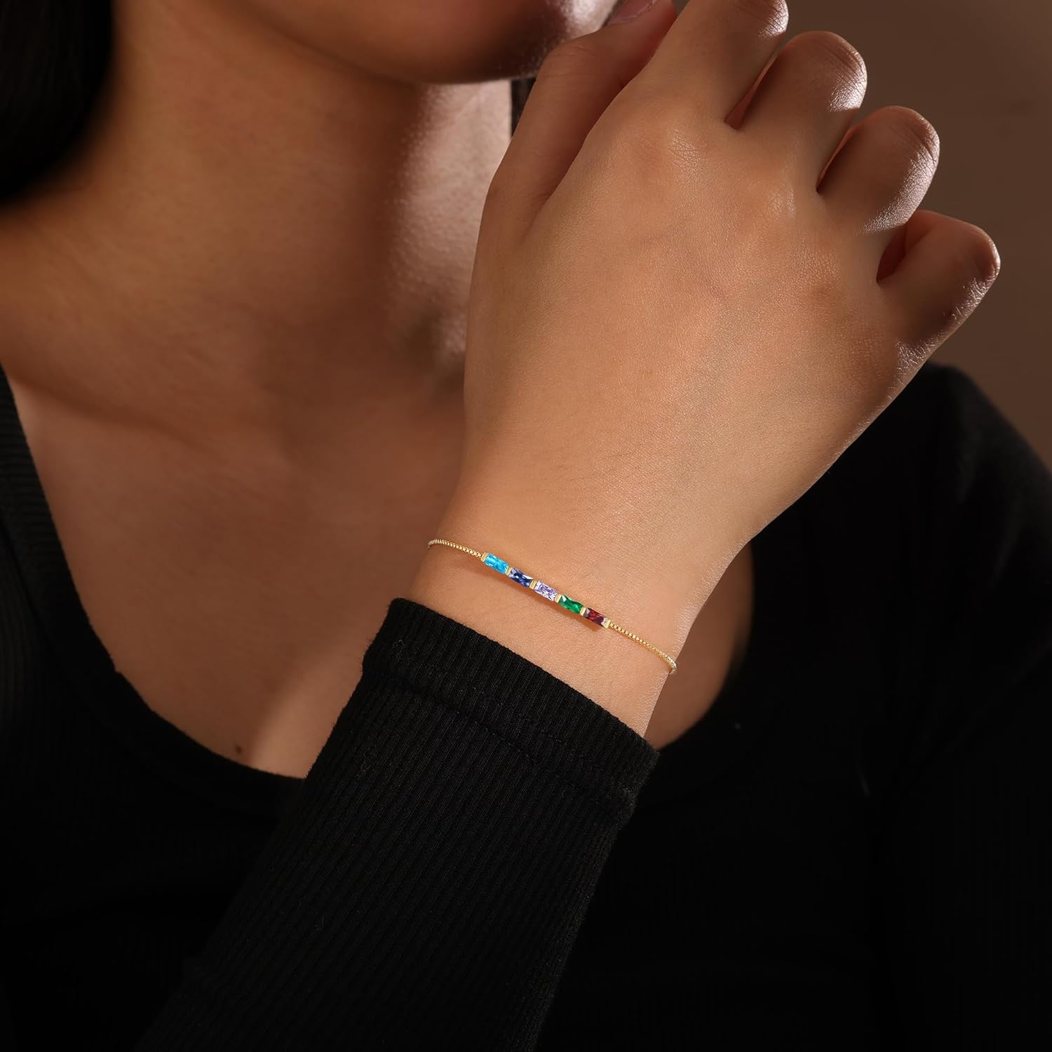 Celebrate the special women in your life with this Custom Birthstone Bracelet, a perfect personalized gift for Mother’s Day, birthdays, anniversaries, or Christmas. This elegant bracelet can be customized with up to six birthstones, each representing the loved ones closest to your heart.