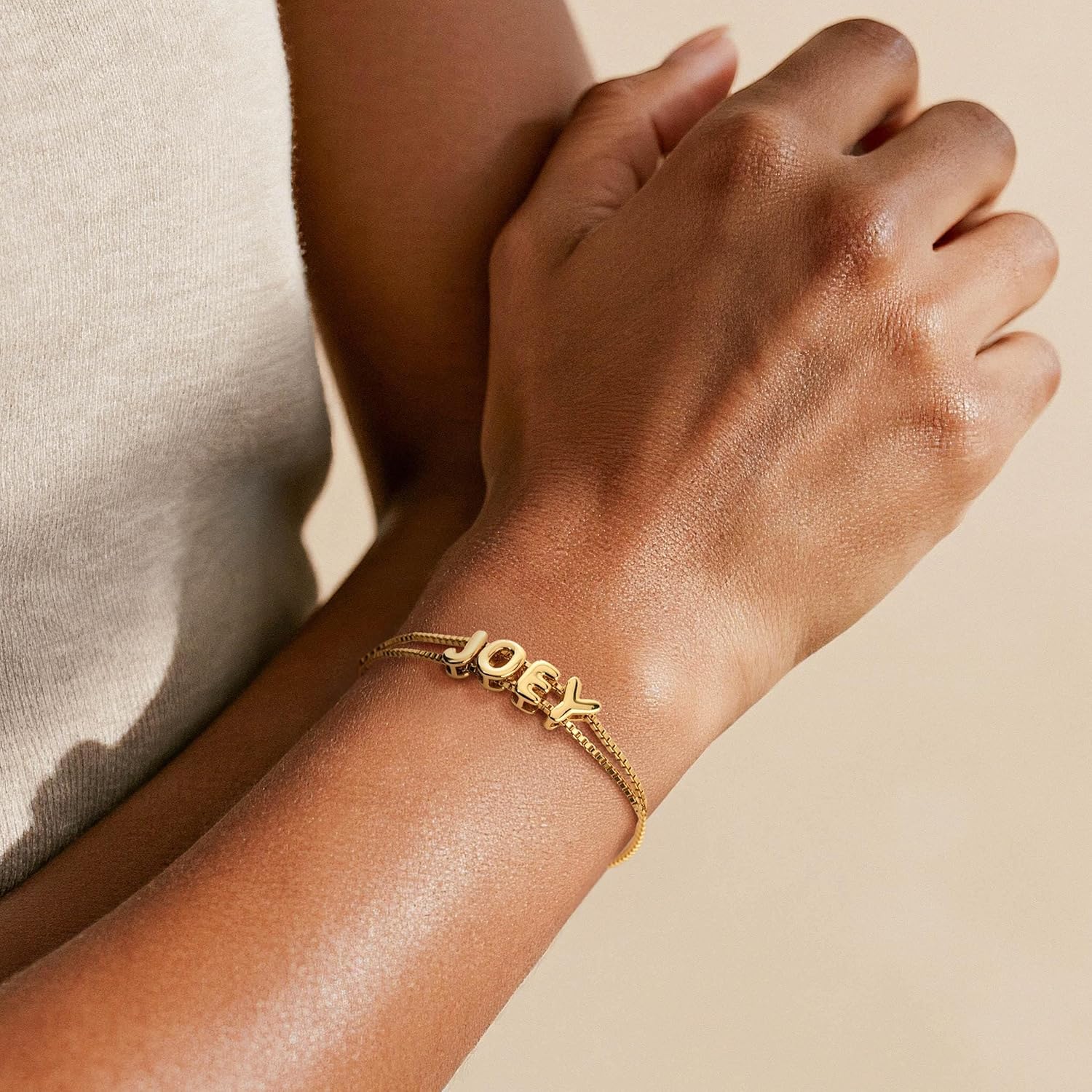 Personalized Bubble Letter Bracelet – Custom Name Chain in Gold & Silver Gift Ready for Mom, Bridesmaid, Grandma!