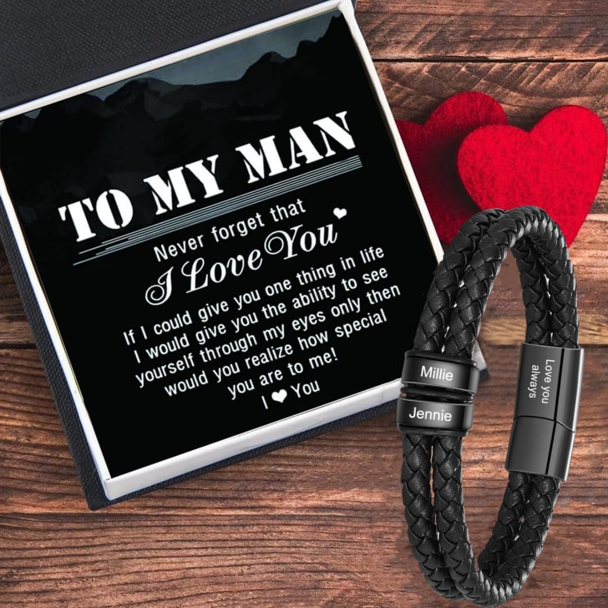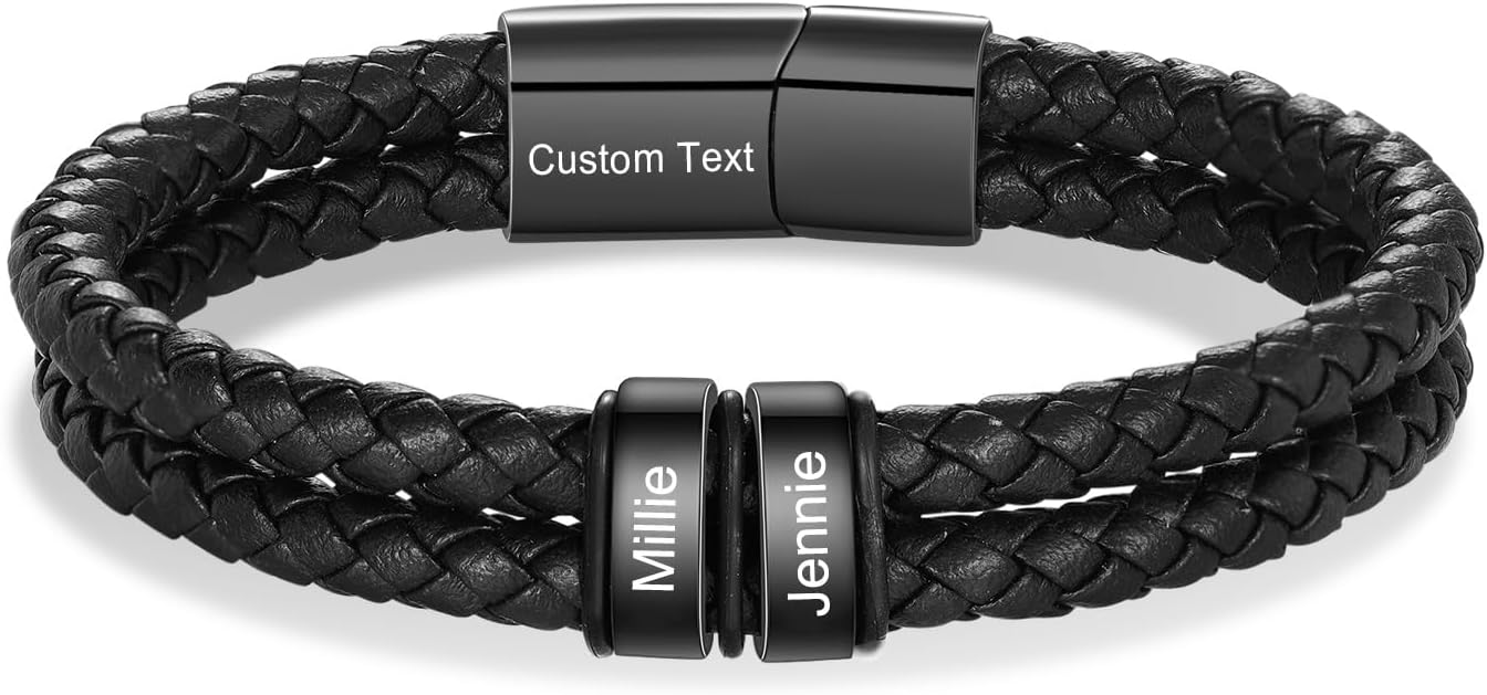 This mens leather bracelet with small custom beads is custom for you with any name. A meaningful gift for celebrating love, fathers day,friendship and family. Engrave their name to express how much you love them!