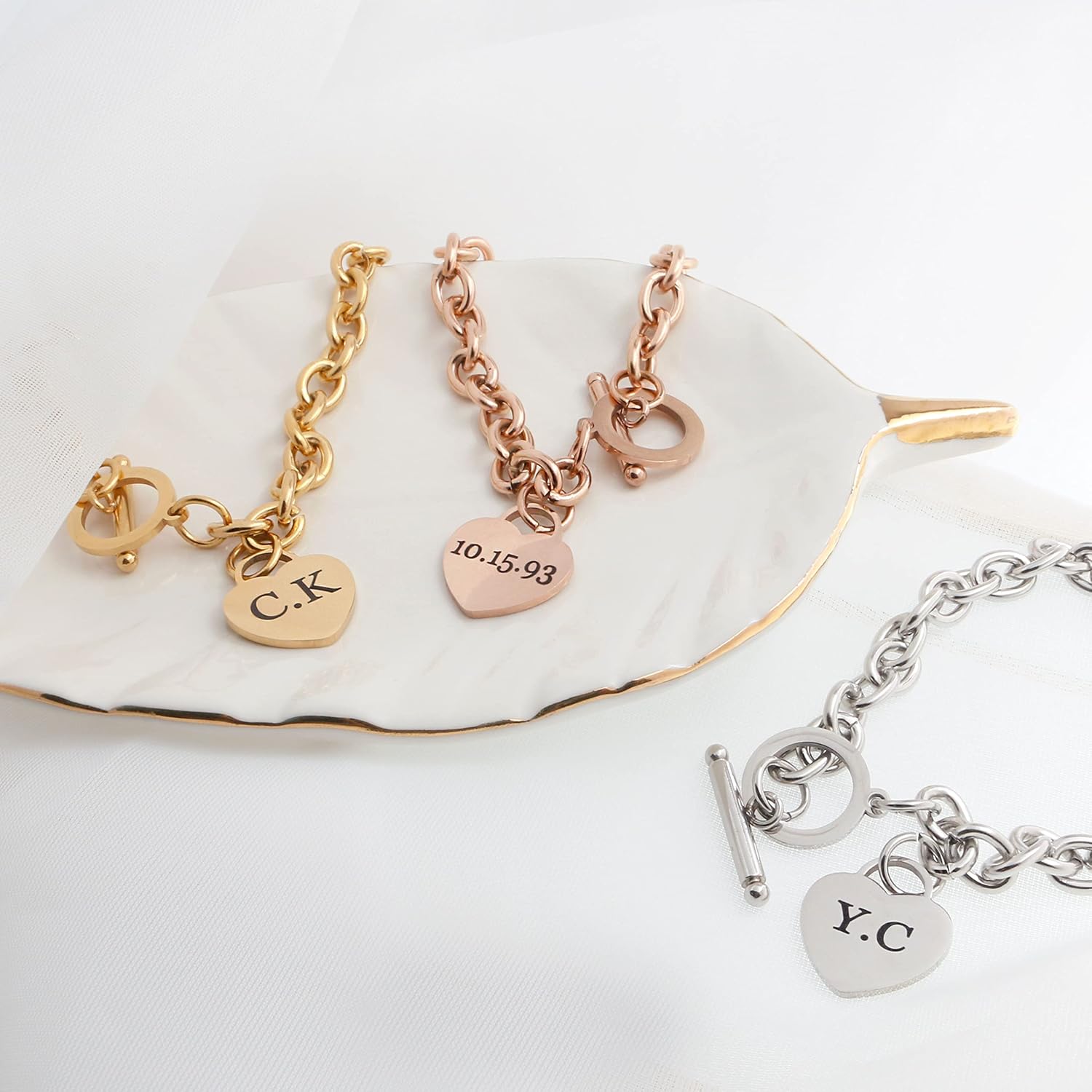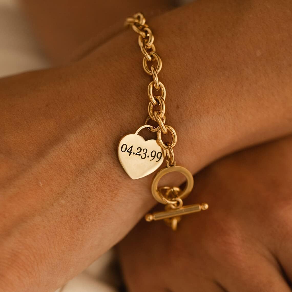 Elevate your gifting game with our exquisite Gold Color Personalized Heart Charm Bracelet. This stunning piece of jewelry is designed to capture hearts and create a lasting impression. The bracelet features delicate heart-shaped charms that can be customized with personalized names, making it a truly unique and sentimental gift for your special someone. Crafted with attention to detail, our Gold Color Personalized Heart Charm Bracelet exudes elegance and charm. The bracelet is beautifully finished in a radiant gold color, adding a touch of sophistication to any outfit or occasion. The heart-shaped charms can be engraved with the names of your choice, adding a personal touch and making it a cherished keepsake.