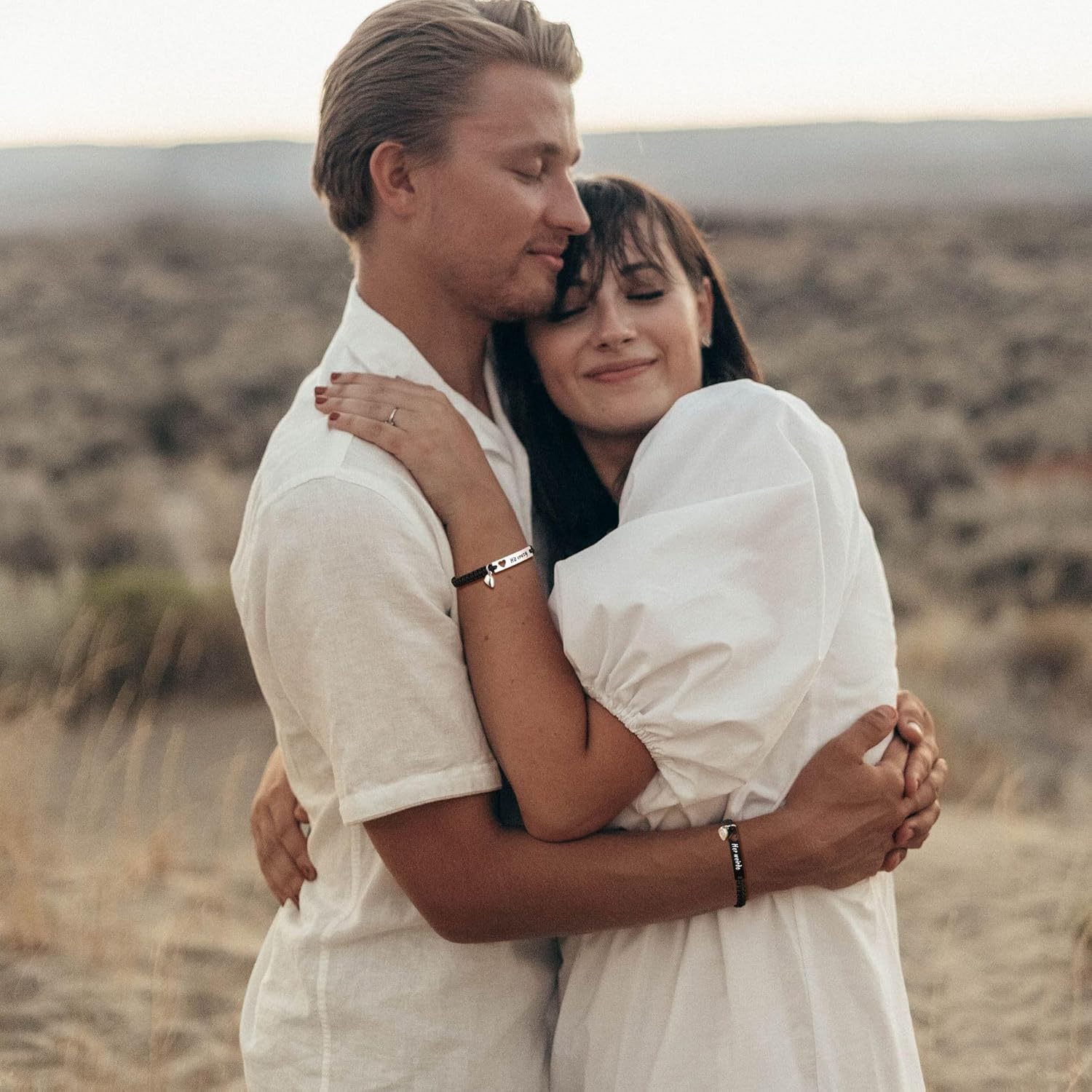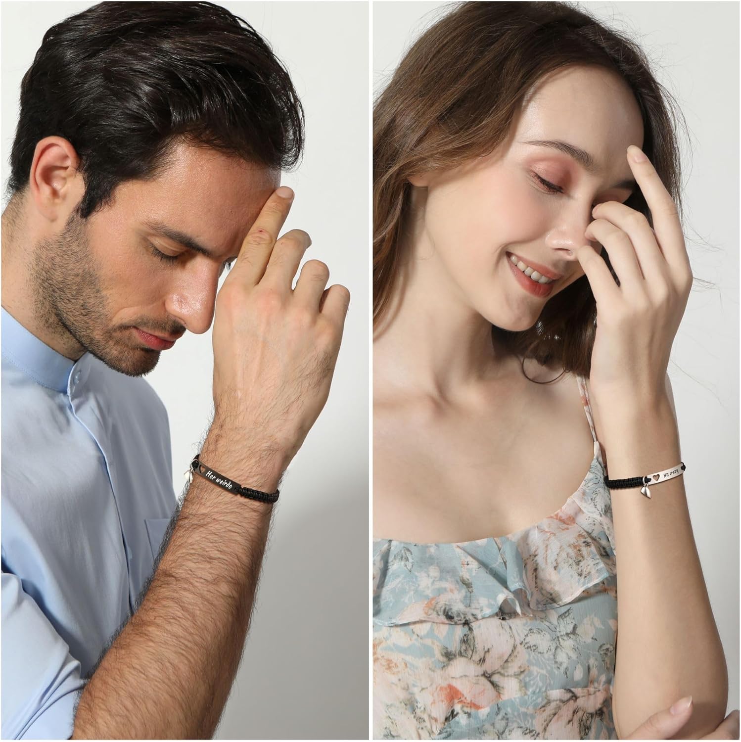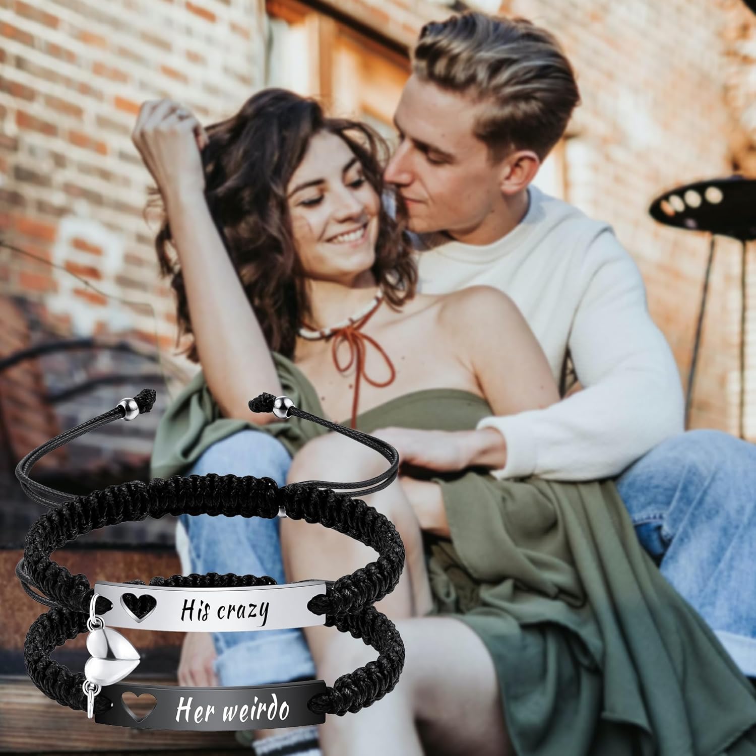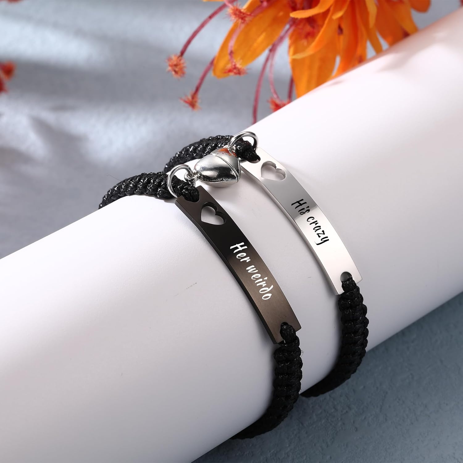Personalized Matching Bracelets for Couples Adjustable Matching Couples Bracelets Set with Connectable Heart Custom Engraving Relationship Name Bracelet Jewelry Gifts for Men Women Couples