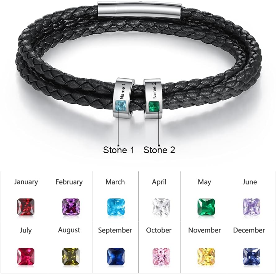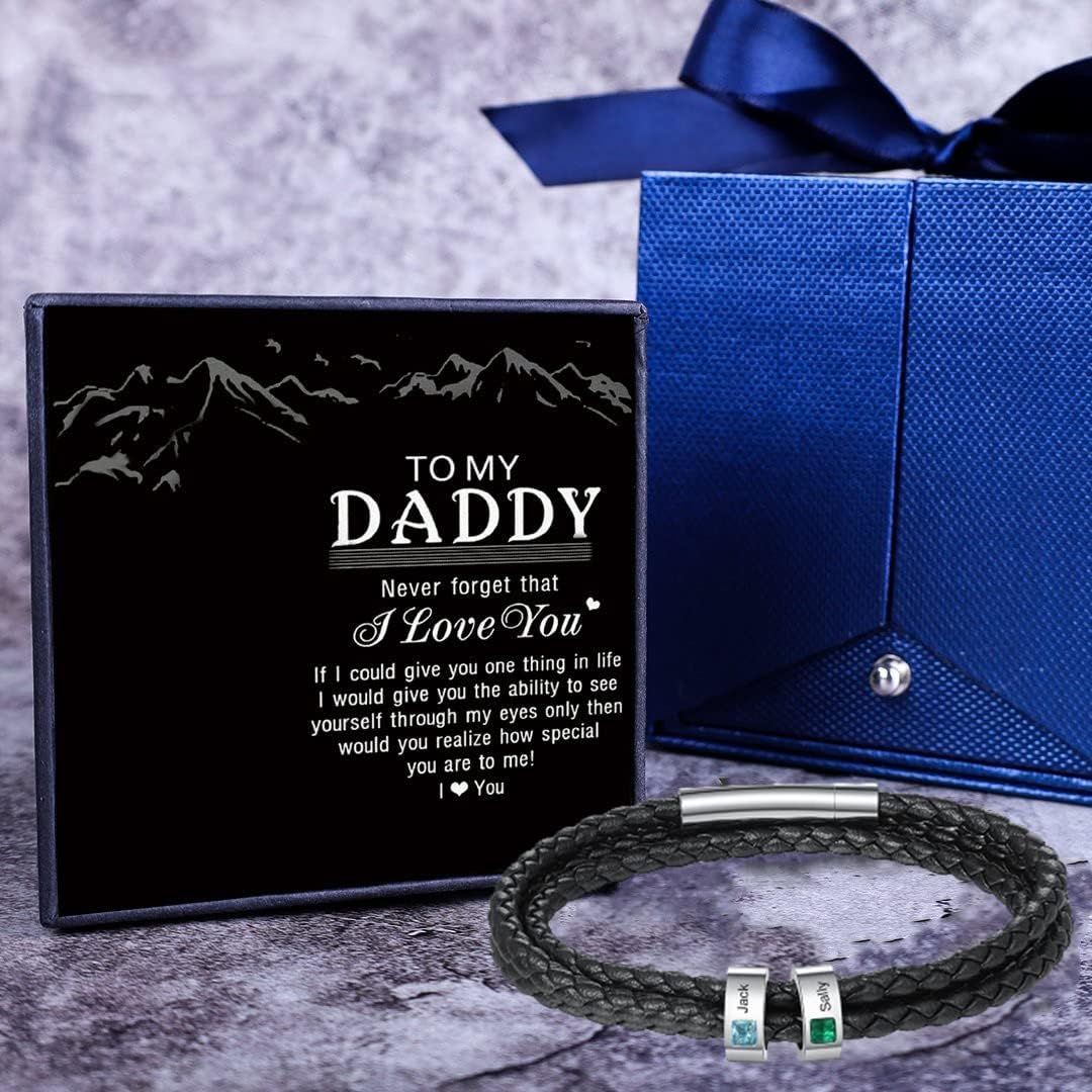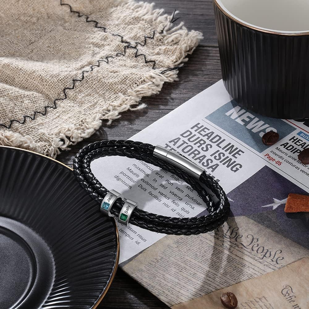 Personalized Men Bracelet – This leather bracelet with custom beads is custom for you with any name. A meaningful gift for celebrating love, fathers day and family. Engrave their name to express how much you love them!