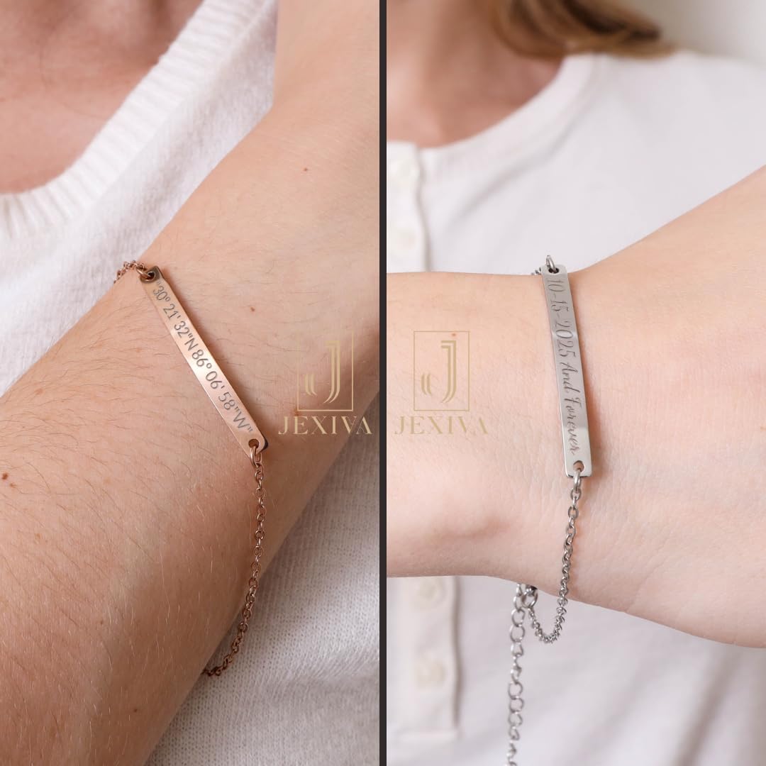 Express love, connection, and individuality with our personalized engraved bracelet. Handcrafted from durable stainless steel and plated in luxurious finishes, this timeless piece is designed to be as unique as the person wearing it.