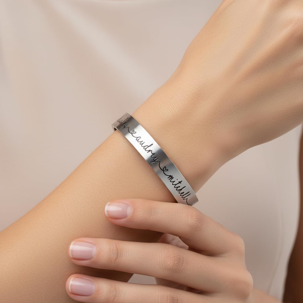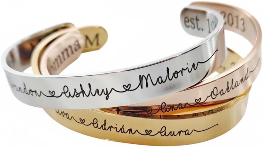The Custom Name Bracelet makes the perfect, unique heartfelt gift for any mom, grandma, sister or friend. The personalized bracelet is simple, elegant, and perfect for Mother’s Day, birthdays, weddings, and Christmas!