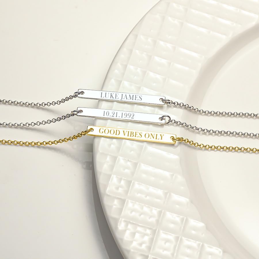 This high polished horizontal bar bracelet is the perfect bracelet for any female of any age. It’s available in Solid .925 Sterling Silver, 14k Yellow Gold Plated or 14k Rose Gold Plated.